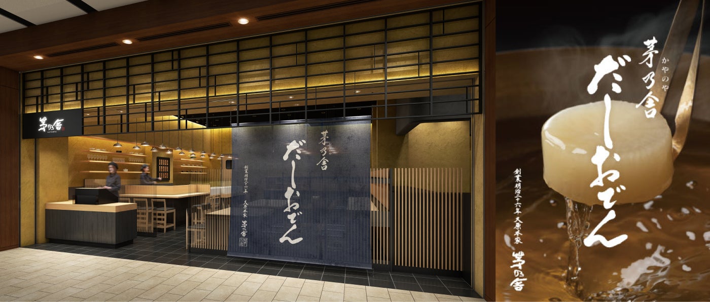 久原本家グループ(福岡県糟屋郡久山町 社主:河邉 哲司)は、「茅乃舎だし」など和風調味料を販売する株式会社 久原本家から、2024年9月30日(月)より東京ミッドタウンガレリア地下1階「汁や 東京ミッドタウン店」の跡地*に「茅乃舎だしおでん」をオープンいたします。同店では、国産素材にこだわった茅乃舎のだしを掛け合わせて丁寧に煮込んだ「だしおでん」を提供いたします。だしが香り立つ店内にぜひお立ち寄りいただき、心地よいひとときをお楽しみください。