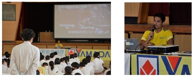 講演では、高校から大学時代、そして低迷期を乗り越えてオリンピックに出場するまでの様々な経験や想い、そして夢を叶えるために大切なことや必要なことを伝えるため、子ども達へ一つひとつ丁寧に語りました。