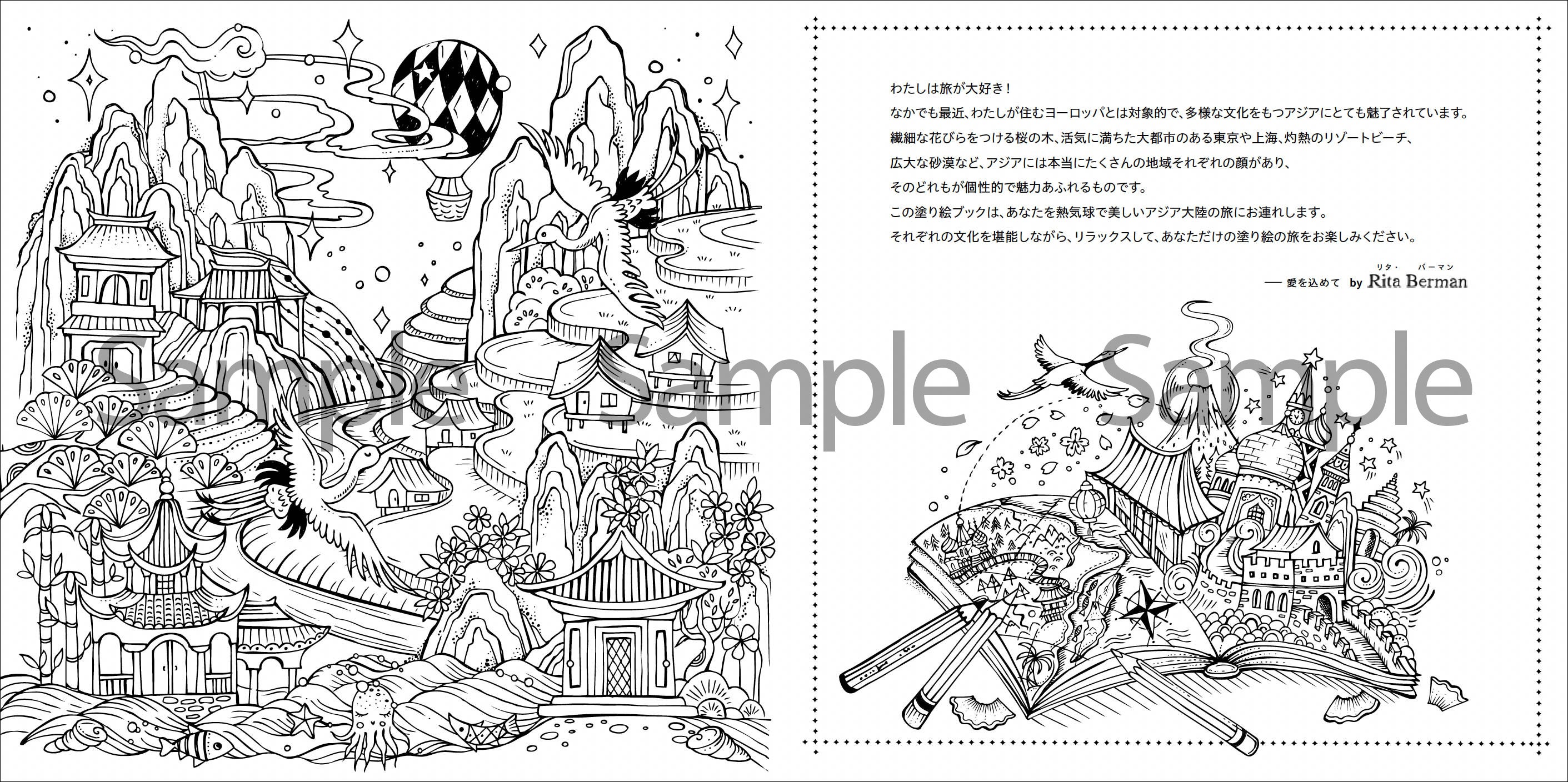 ドイツで人気の塗り絵作家、リタ・バーマンが描く、世界を旅する塗り絵シリーズが遂に日本上陸!! 『リタの塗り絵ブック 夢のアジア旅』1月発売