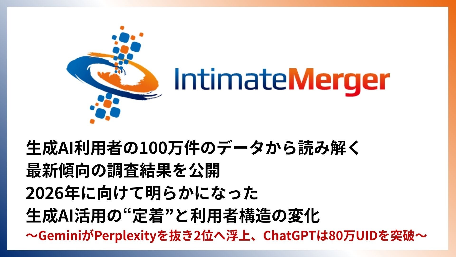 【インティメート・マージャー調査】生成AI利用者 約100万件のデータから読み解く最新動向2026年に向けて明らかになった生成AI活用の“定着”と利用者構造の変化
