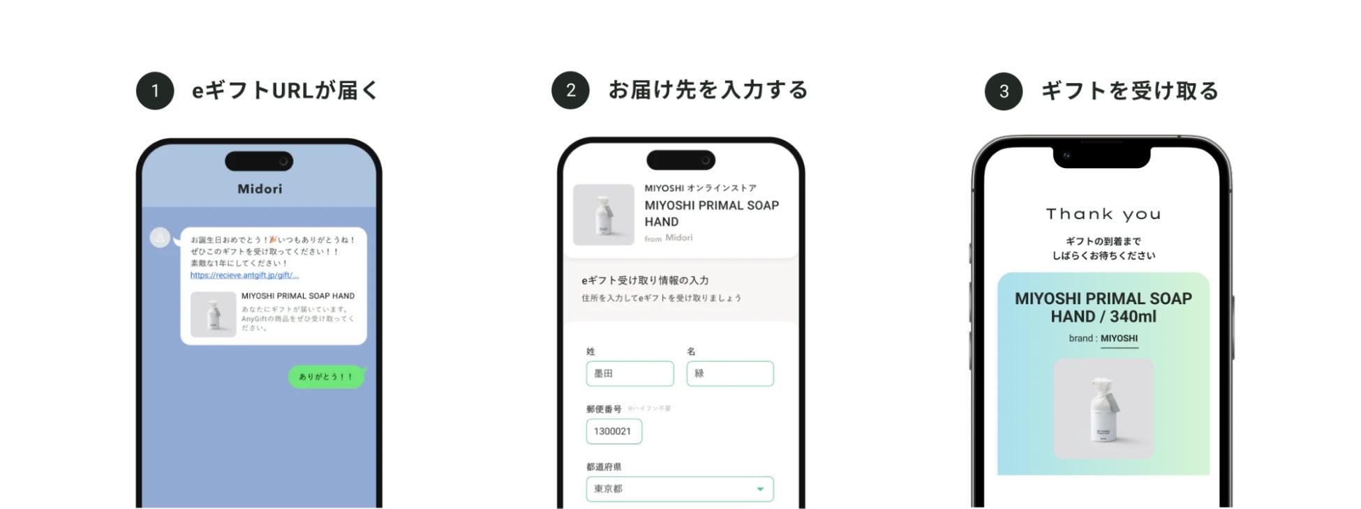 AnyReach株式会社(本社:東京都港区、代表取締役:中島 功之祐)は、ミヨシ石鹸株式会社(本社所在地:東京都墨田区、代表取締役社長:三木 晴信)が展開する「MIYOSHIオンラインストア」にギフトサービス『AnyGift(エニーギフト)』の提供を開始しました。