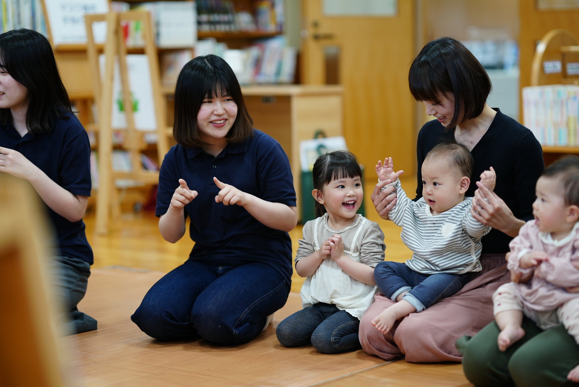 お子様をおひざに抱っこしながら、わらべうたを楽しみましょう。