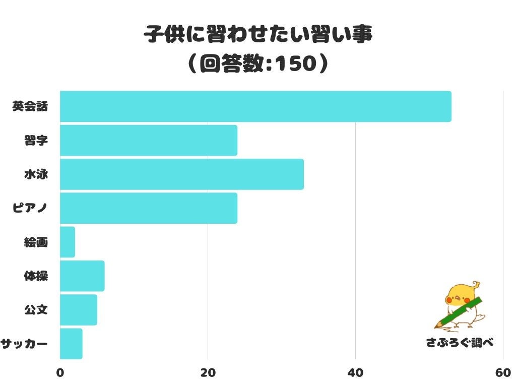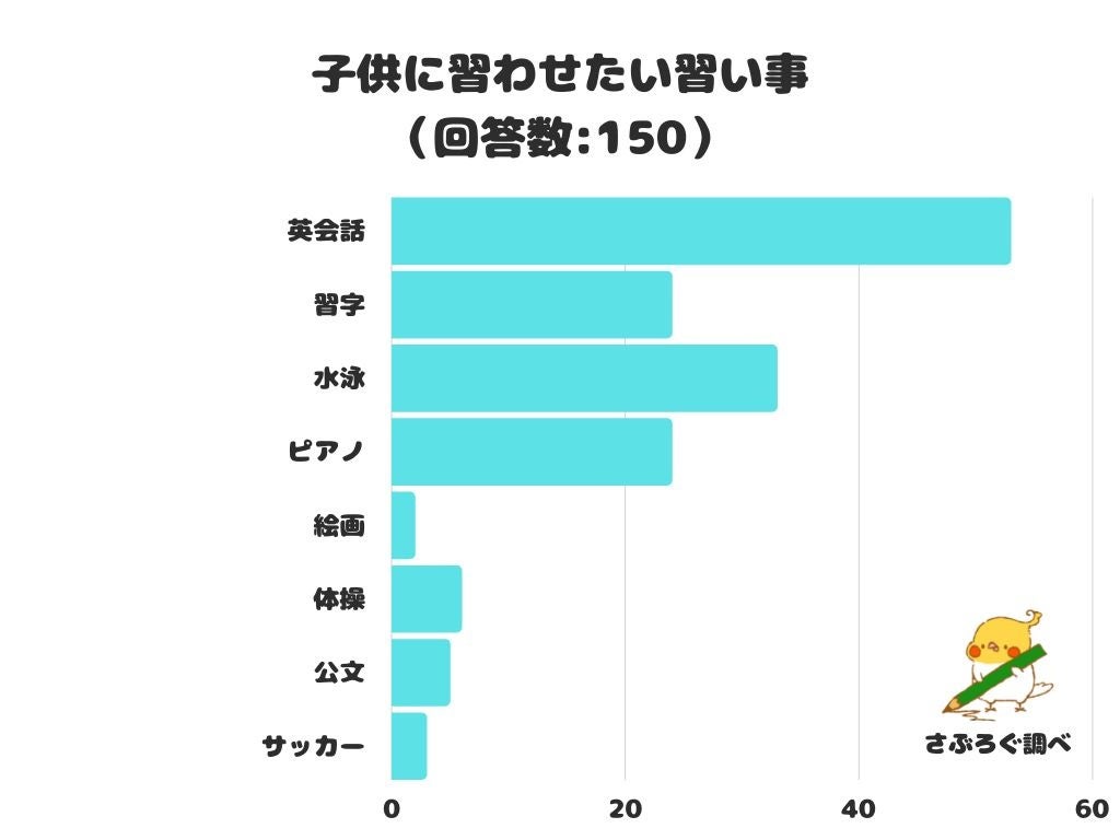 1位は、覚えるスピードが早い小さいうちからと「英会話」が選ばれました。