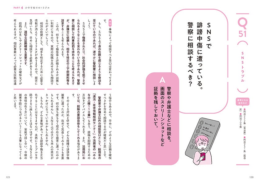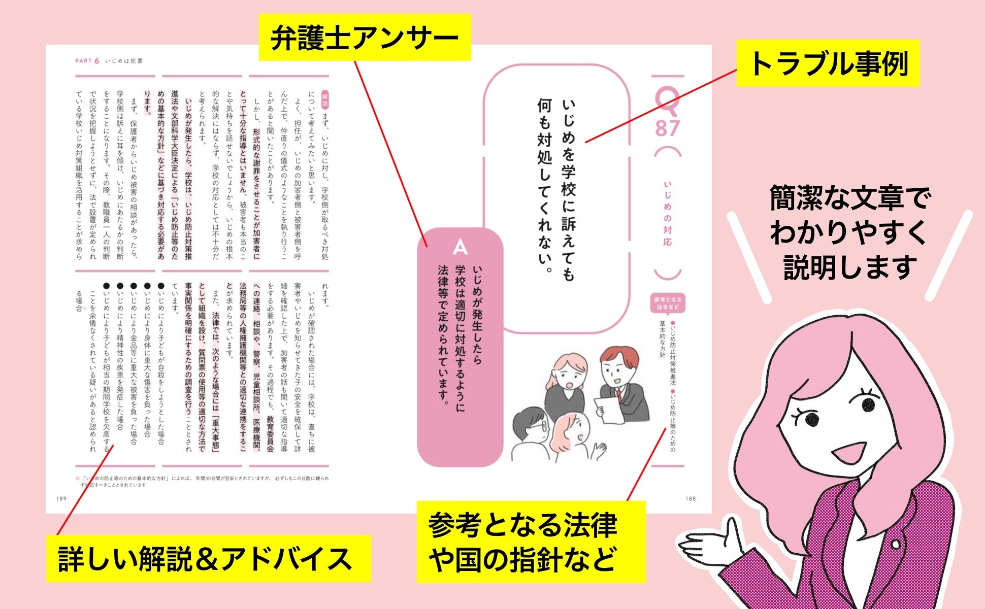 法の知識は、すぐに役立つことは少ないかもしれません。しかし、法の知識や法的な考え方、類似の事例を知っておくことで、いざという時に判断の基準になったり、行動の指針になったりして、トラブルからわが子を守ることができます。だから、子どもを被害者にも加害者にもさせないために、親が法の知識や法的な考え方を身につけることが求められるのです。