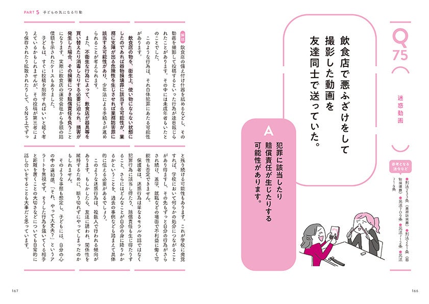 最近では、未成年による飲食店での迷惑行為が相次いで報道されました。子どもが単に悪ふざけの感覚で行った行為でも、多額の損害賠償を請求されてしまったり、取り返しのつかない結果を招いてしまったりすることもあります。このような事例を親から子に伝え、ともに考えることで、子どもの行為を止められる場合もあるでしょう。
