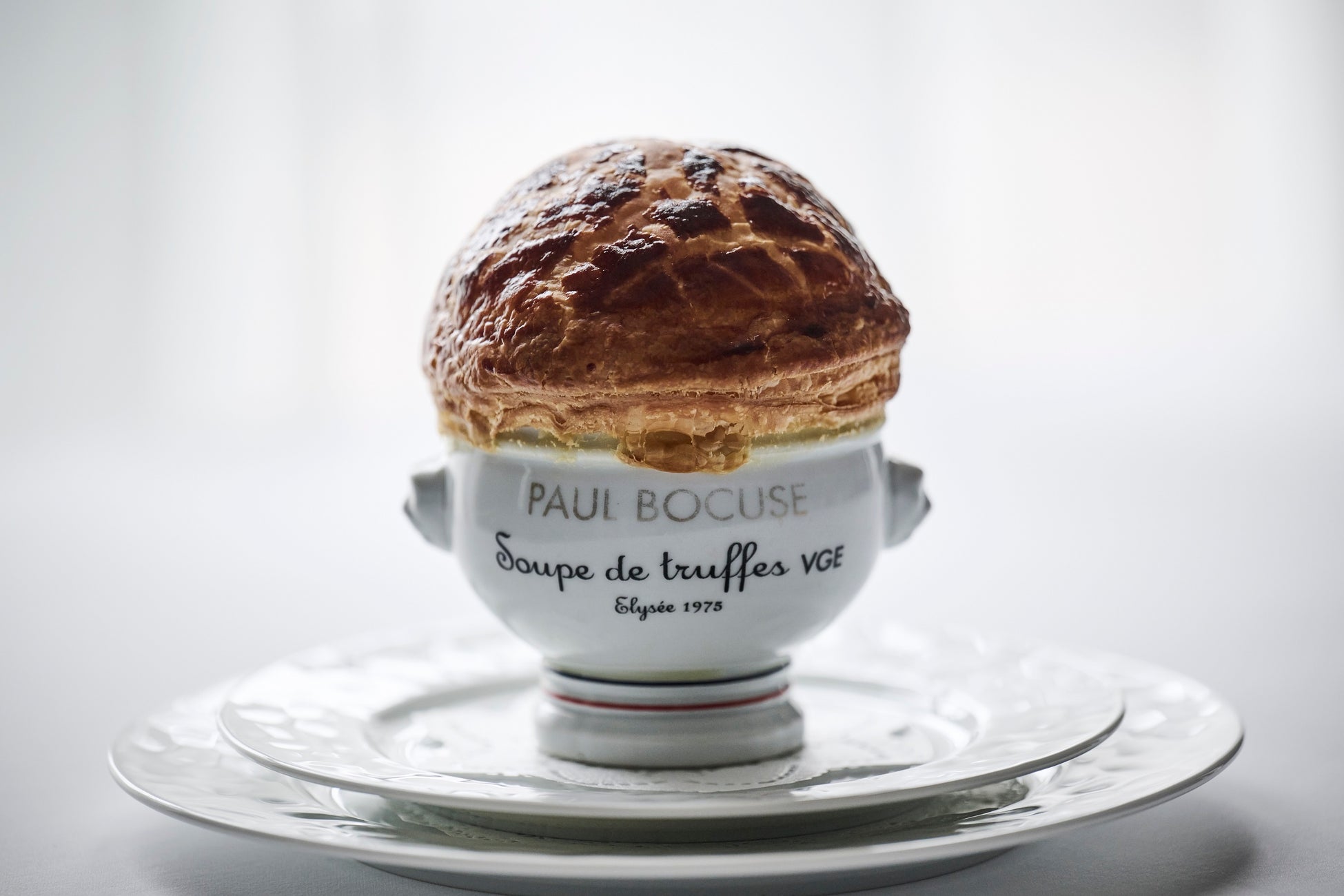 フランス料理界の巨匠ポール・ボキューズ氏が、1975年にフランスの料理人として初めて「レジオン・ドヌール勲章」を受章した際、当時の大統領ヴァレリー・ジスカール・デスタン氏に捧げた伝説のスープ。パイを開けると、黒トリュフ、フォアグラ、牛頬肉を使った贅沢なスープの香りが広がります。特別なひとときに、ぜひ味わっていただきたい一品。