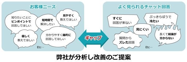 NTTネクシアの「有人チャット応対診断サービス」は、お客様が感じられた印象を数値化することにより、お客様のニーズと実際のチャット対応とのギャップを分析し、お客様の目線に立った改善点をご提案いたします。