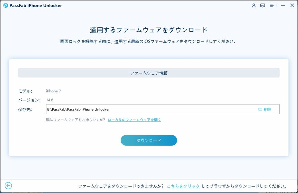 Step3:「ダウンロード」を押してiOSファームウェアを読み込みます。