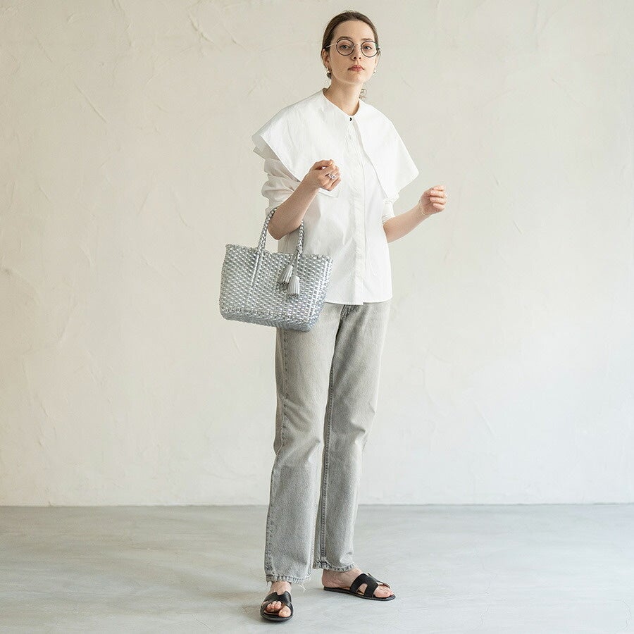 輝く太陽の下で個性がキラリ光る印象派かごバッグ。