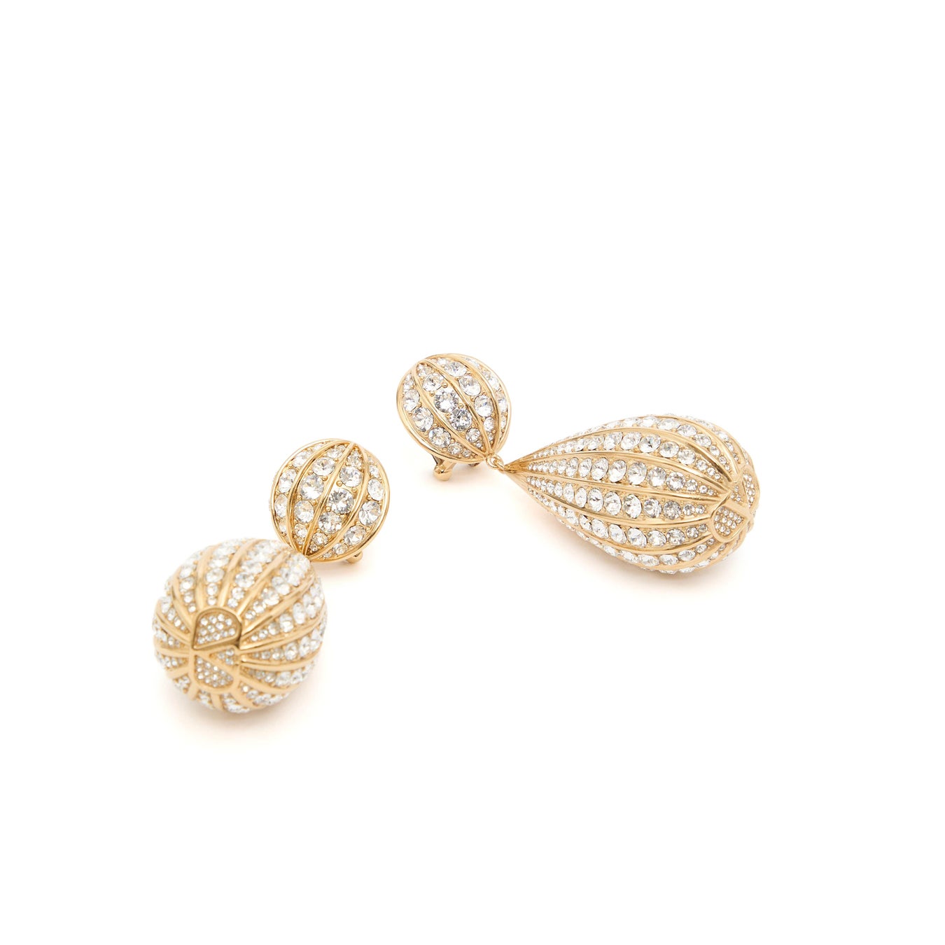 下部のVロゴシグネチャーが特徴的なパールとスワロフスキー®クリスタルを使用したイヤリングは、過去のアーカイブコレクションから着想を得ており、優れた職人技とディテールへのこだわりを示すアイテムです。