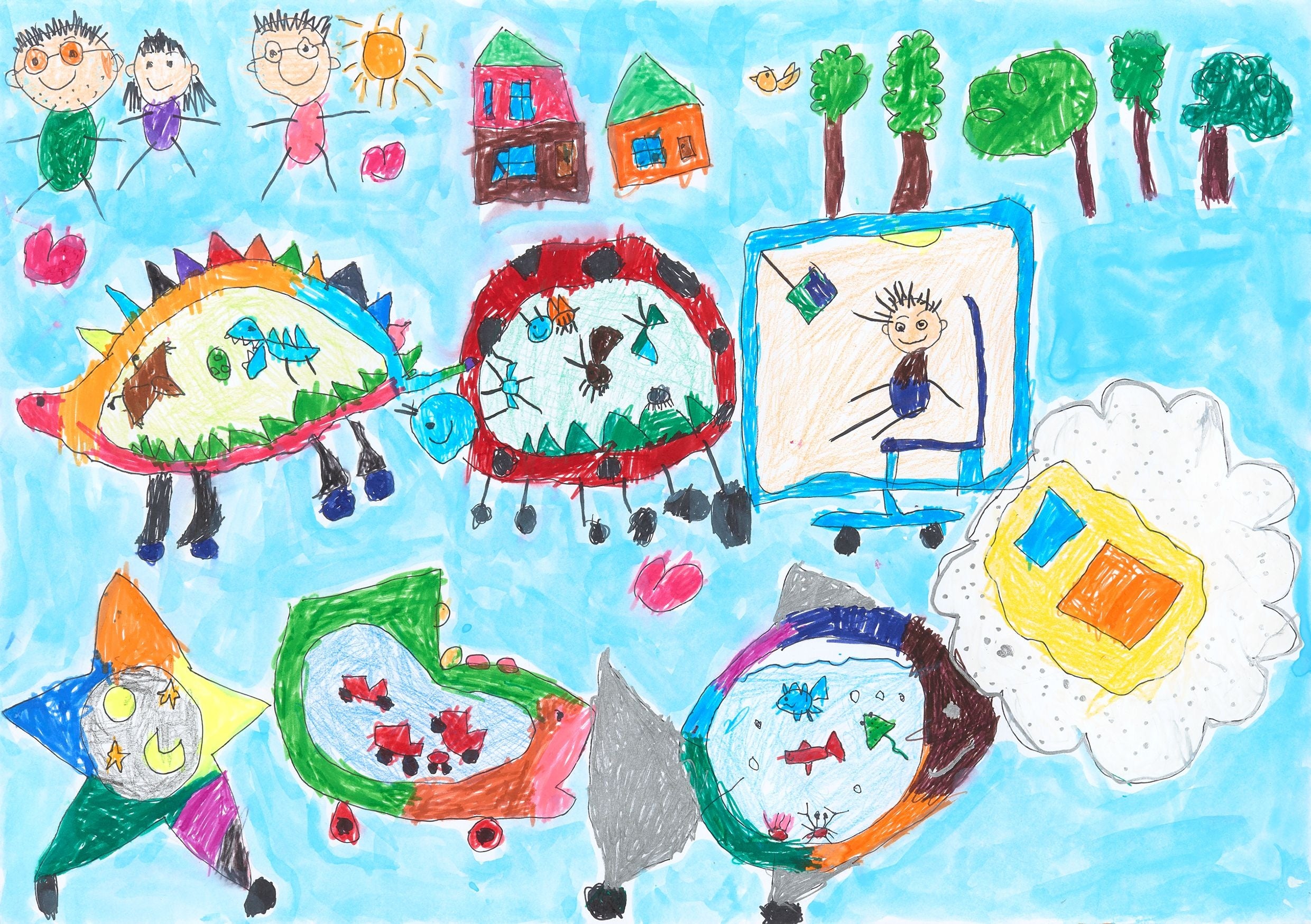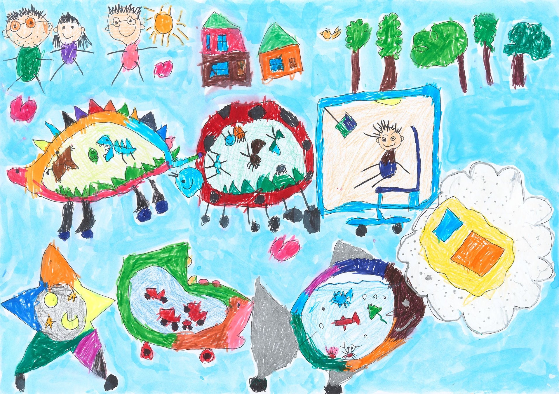 恐竜・虫・テレビ・雲の布団・海・クルマ・宇宙…僕の大好きなクルマを全部磁石でくっつけて、単身赴任のパパや遠くに住んでいる祖父母など大好きな人たちの所に、いつでも自動運転で会いに連れて行ってくれるクルマがあったらいいなぁ。