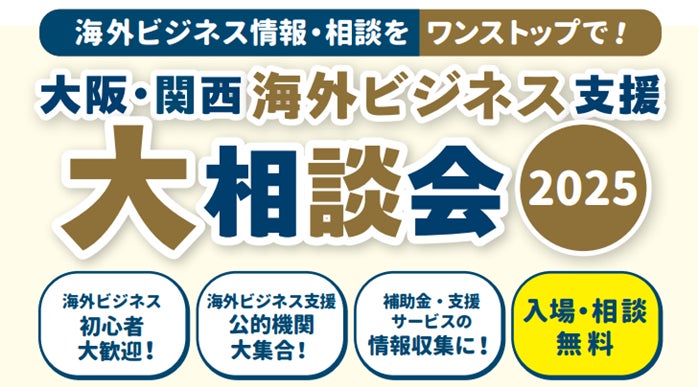 大阪国際ビジネス支援コンソーシアム(事務局:公益財団法人大阪産業局)は、2025年12月2日(火)に、マイドームおおさかにて「大阪・関西海外ビジネス支援大相談会2025」を開催します。「海外ビジネスや外国人材採用に関心はあるが、何から始めたらよいか分からない」 「海外ビジネス・外国人材採用に課題や悩みがある」 「金融機関として企業の海外ビジネスを支えている」─そんな方々にぜひご参加いただきたいイベントです。