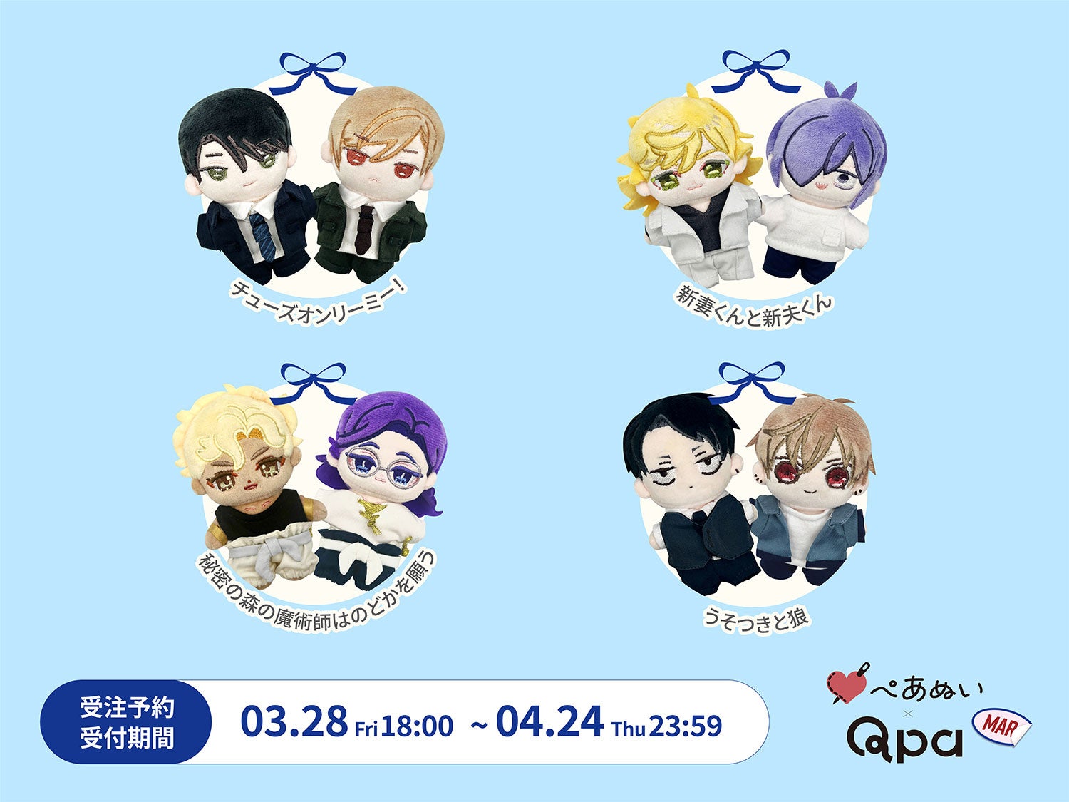 『Qpa×ぺあぬい』Qpa大人気作家様総勢41名でおくる120以上のキャラクターがぬいぐるみになって登場! 3月分受注予約開始!