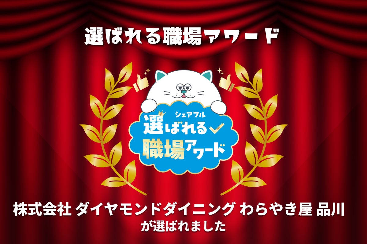 スキマバイトアプリ『シェアフル』、「選ばれる職場アワード」を開催「株式会社ダイヤモンドダイニング わらやき屋 品川」が受賞