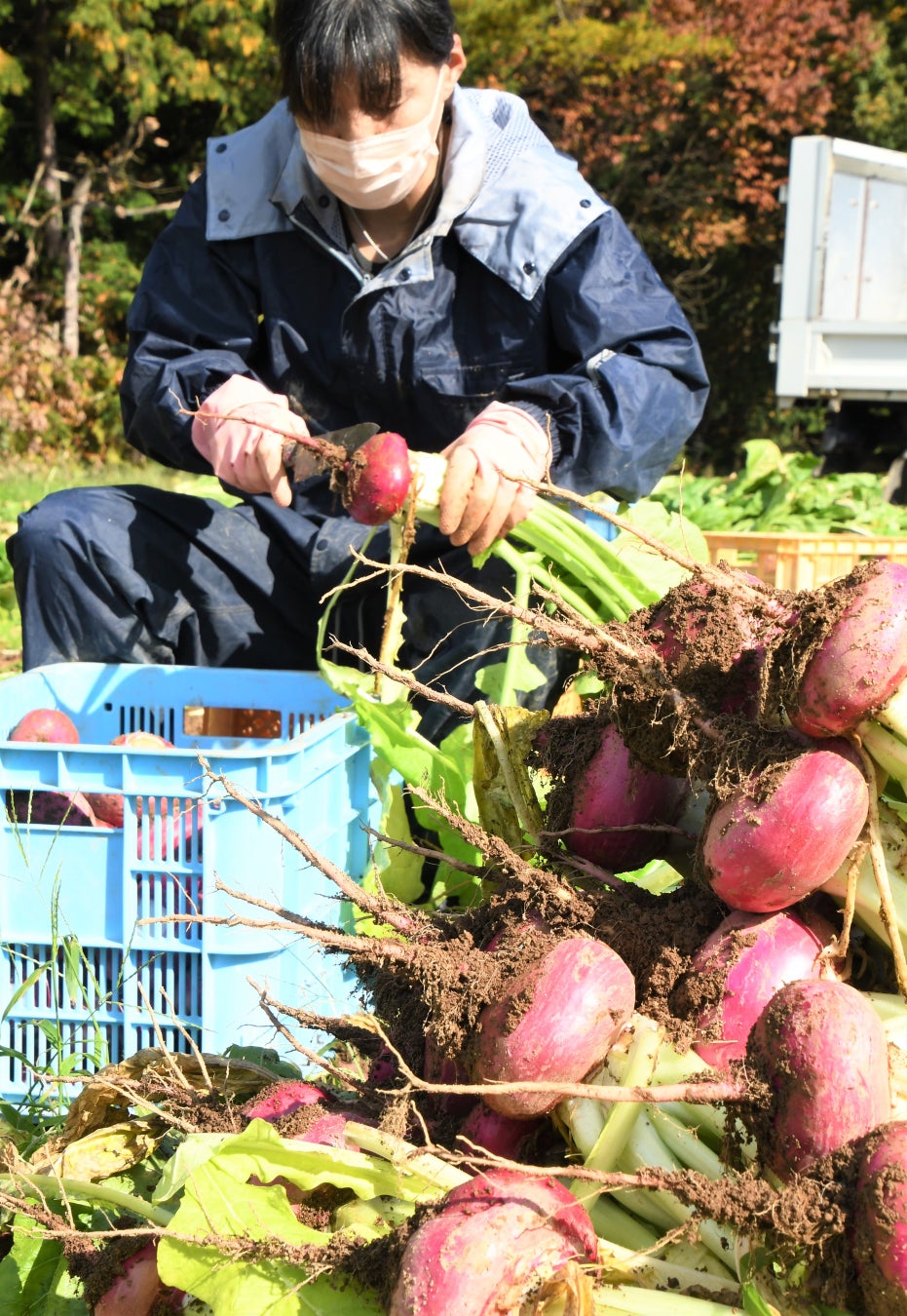 岐阜県高山市では、飛騨の伝統野菜である「赤カブ」の収穫が最盛期を迎えています(11月12日撮影)。