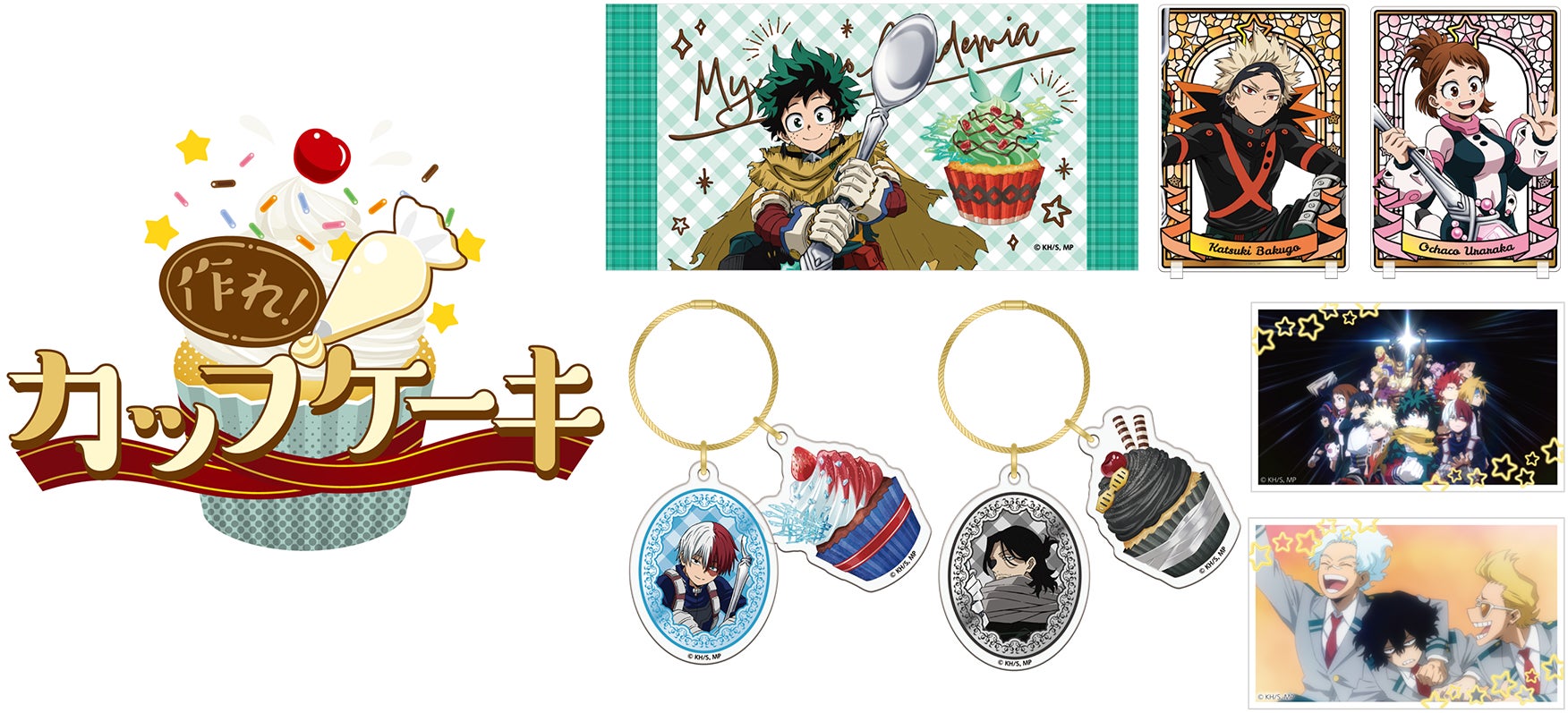 “オープンスクール” は、前回に続き雄英高校制服姿でありつつ、デクたち5人のキャラクターがヒーローコスチュームの一部を装着している新鮮な描き下ろしビジュアルが登場! キャラポップストアでは “カップケーキ”をテーマに、デク、爆豪、お茶子、轟、相澤の5人が、それぞれをイメージした大きなカップケーキと共に描かれており、こちらのオリジナルグッズが発売となります。人気イラストレーターみぞぐちともや氏によるイベントオリジナルイラストを使用したオリジナルグッズやキャラクターをモチーフにしたフードを販売します。