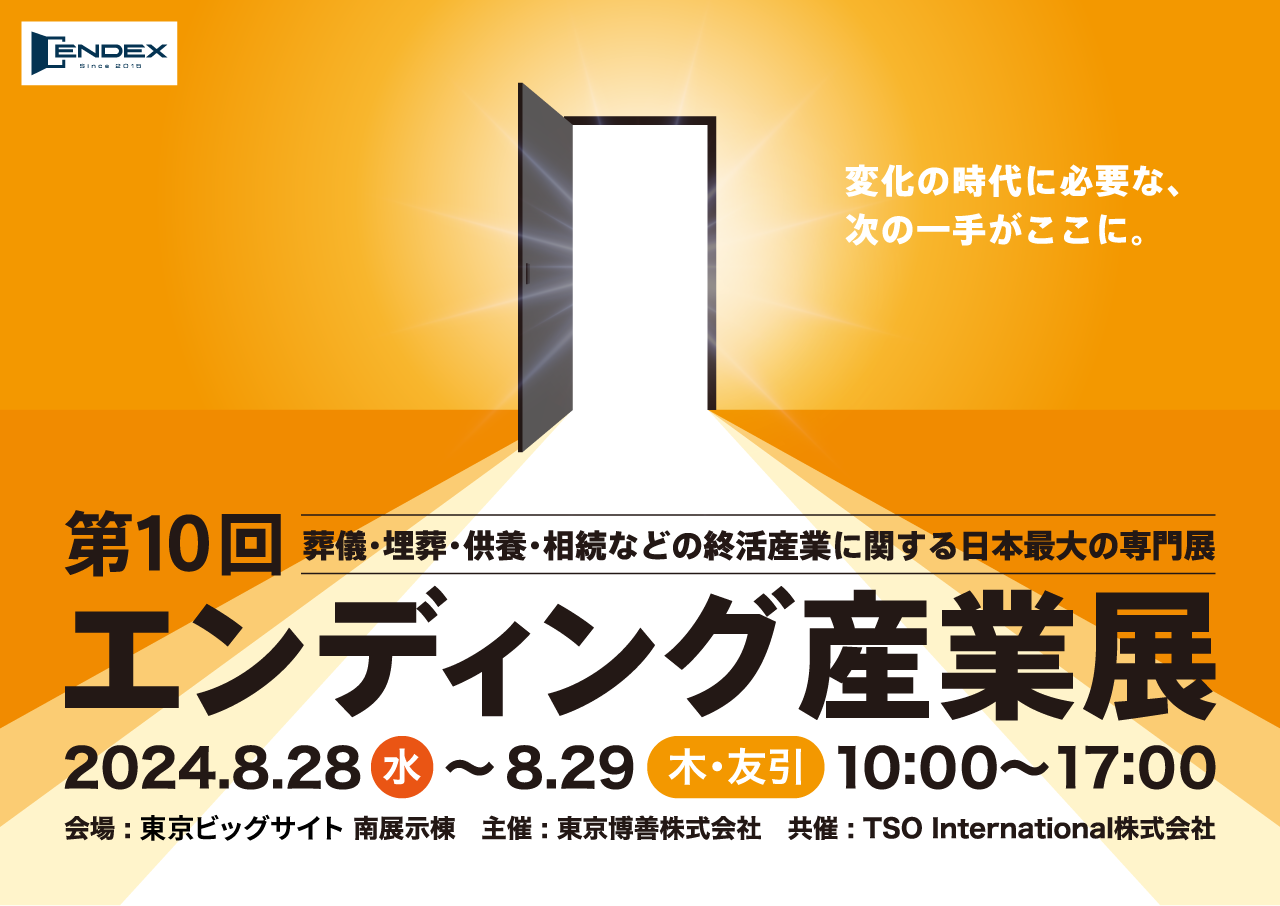 終活業界最大規模イベント「第10回エンディング産業展」が2024年8月28・29日開催! 出展検討社向けオンライン説明会を5月10日に開催いたします。