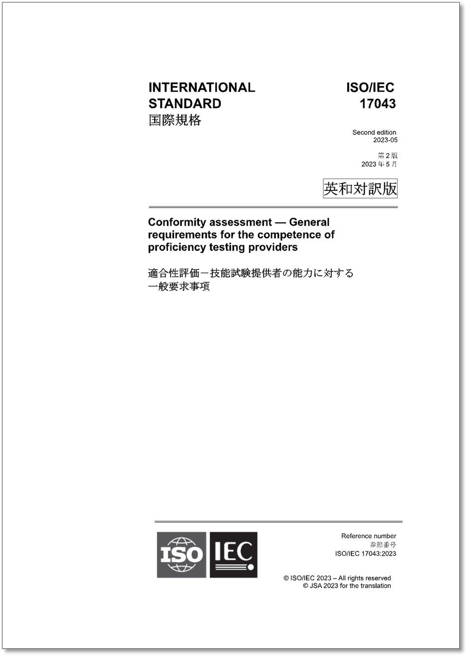【新刊邦訳規格の発行!】 ISO/IEC 17043:2023「適合性評価-技能試験提供者の能力に対する一般要求事項」他5点の英・日対訳版を発行しました