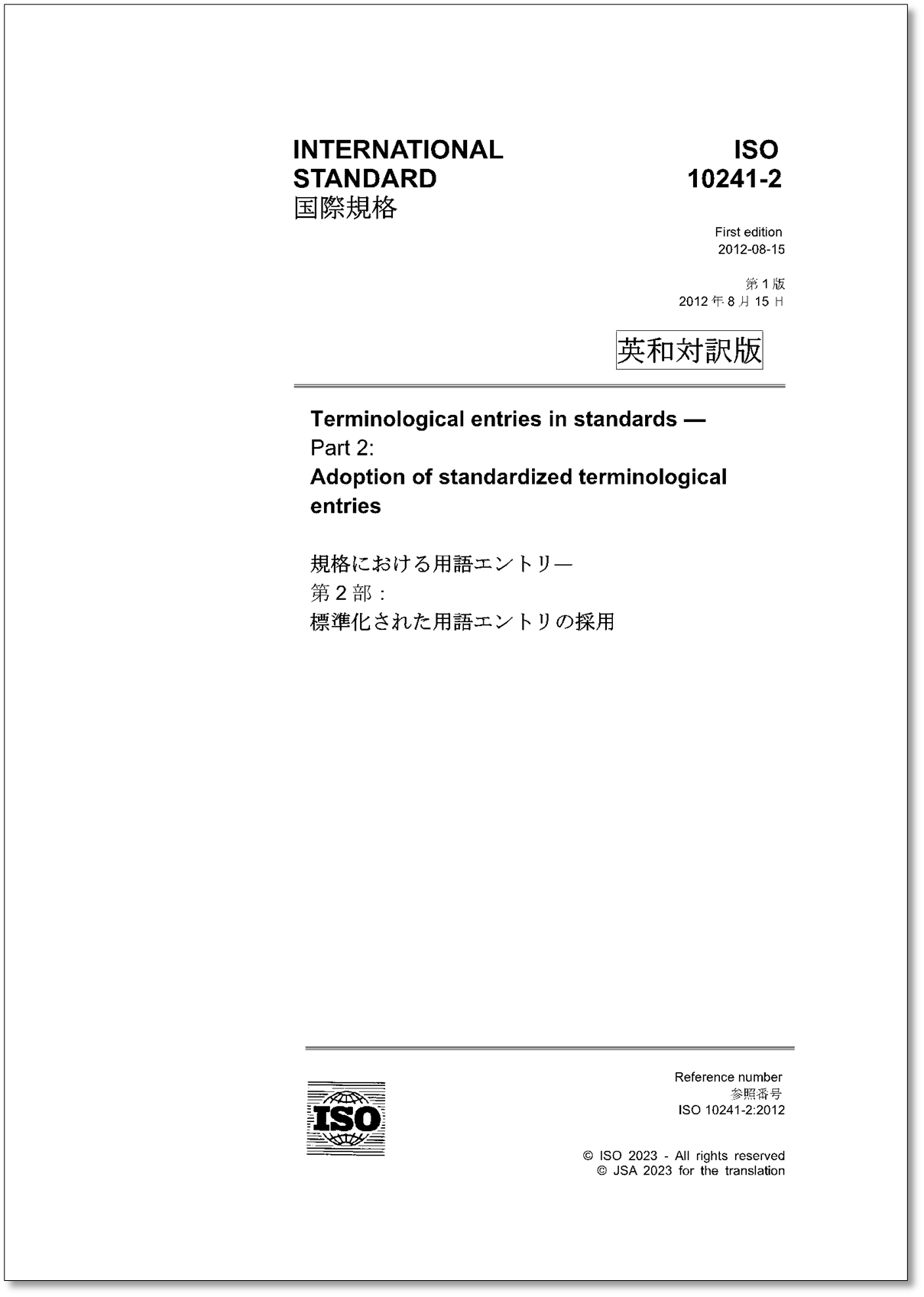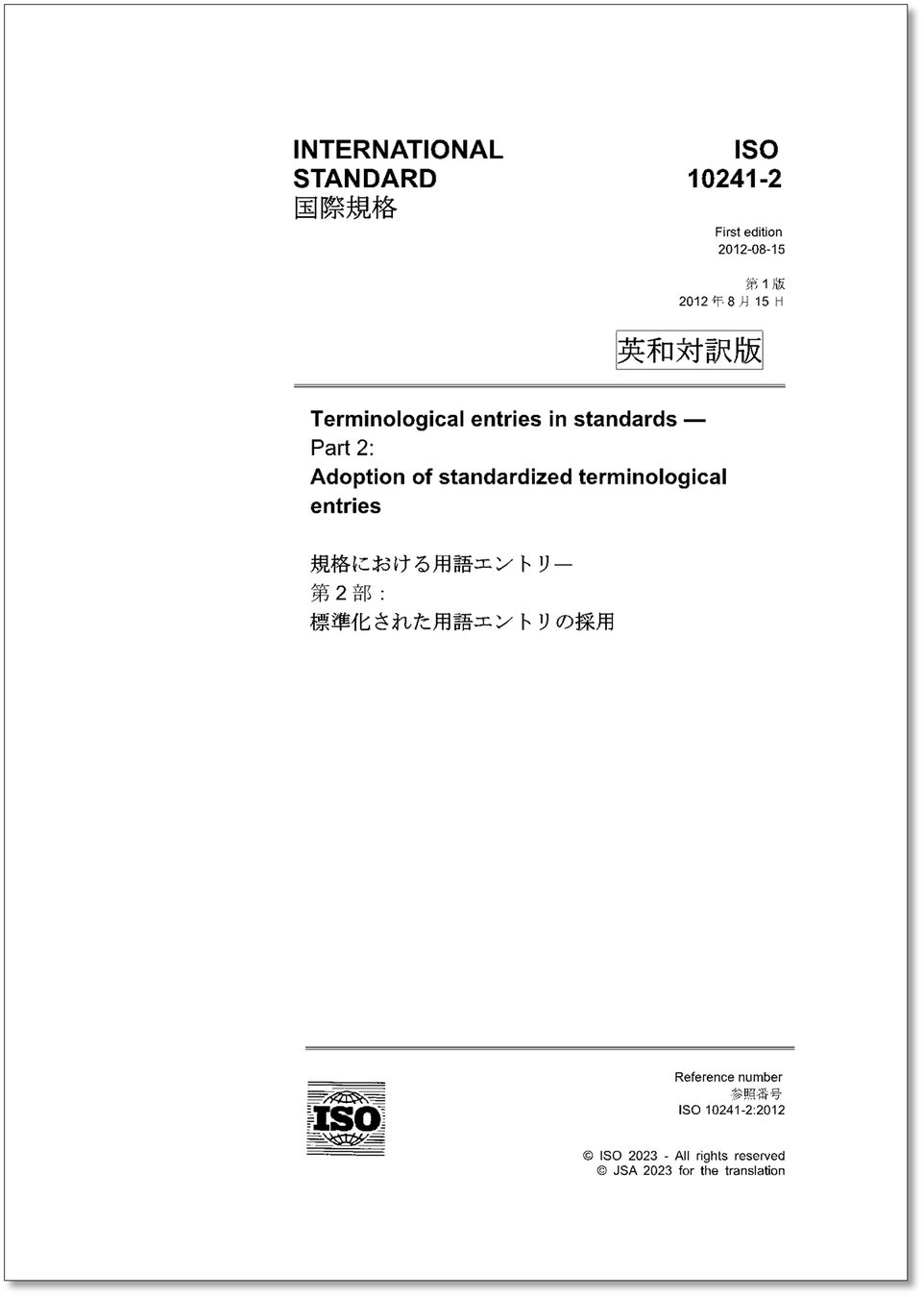 ● ISO 10241-2:2012「規格における用語エントリ―第2部:標準化された用語エントリの採用」