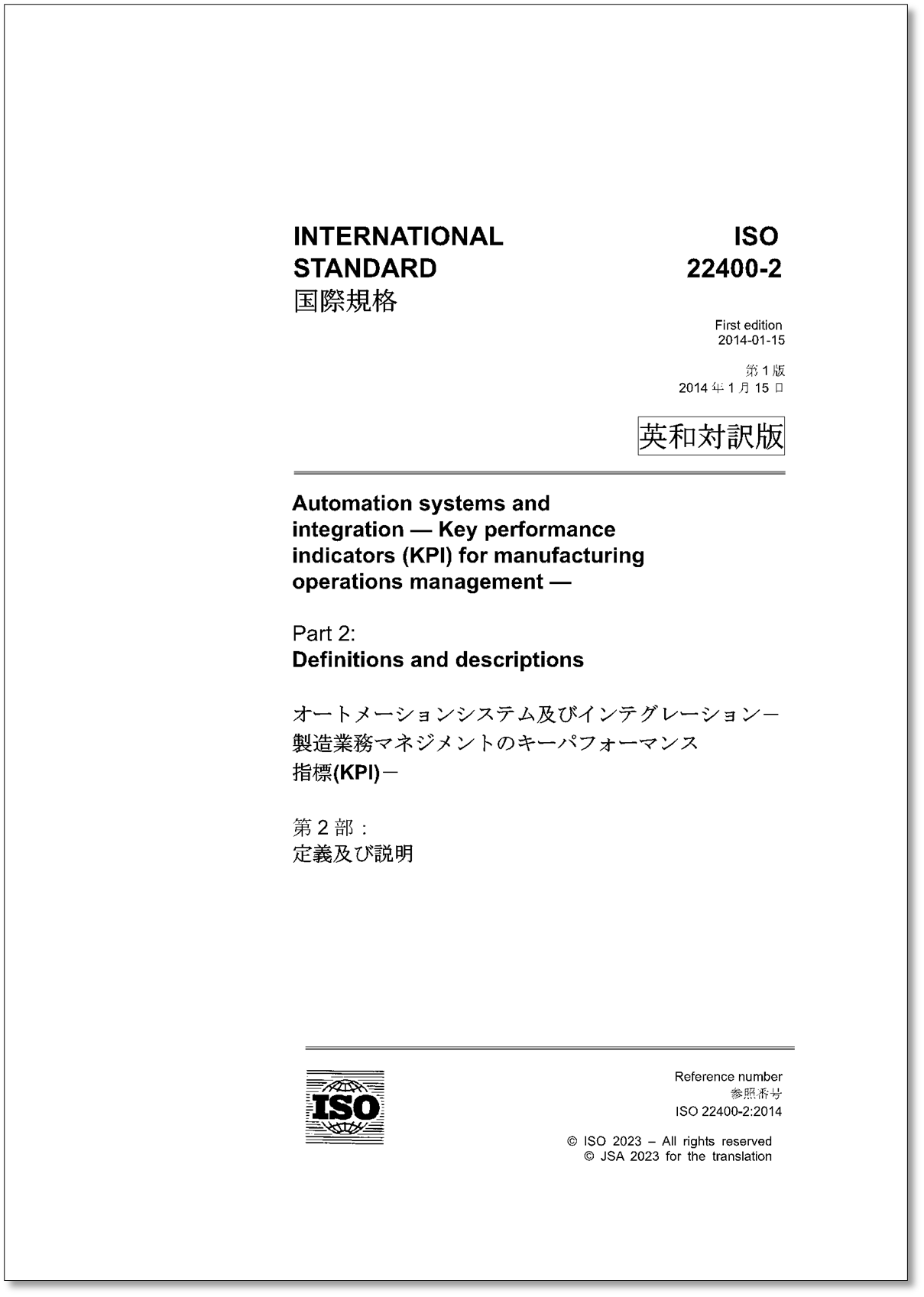 ● ISO 22400-2:2014「オートメーションシステム及びインテグレーション-製造業務マネジメントのキーパフォーマンス指標(KPI)-第2部:定義及び説明」