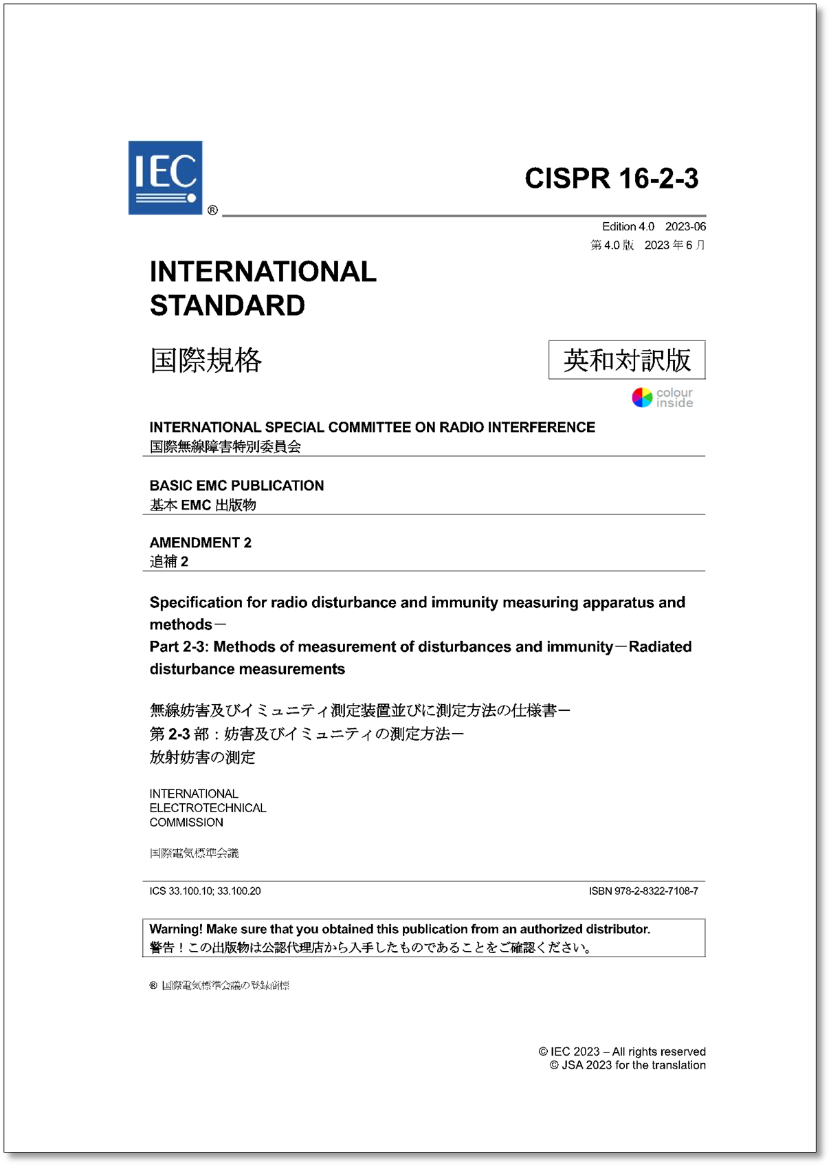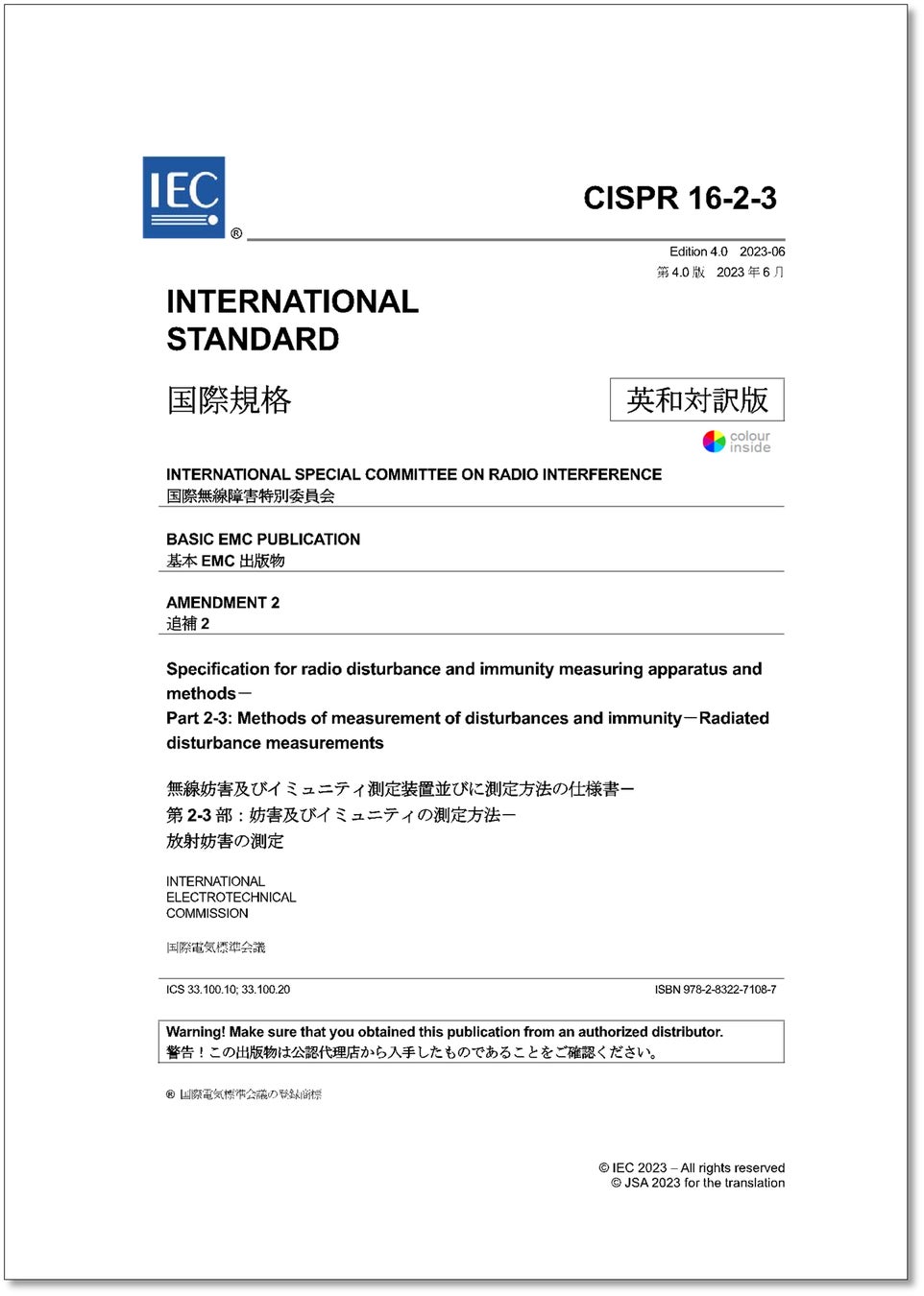 ● CISPR 16-2-3 Amd.2 Ed. 4.0:2023 (b)「追補2-無線妨害及びイミュニティ測定装置並びに測定方法の仕様書-第2-3部:妨害及びイミュニティの測定方法-放射妨害の測定」