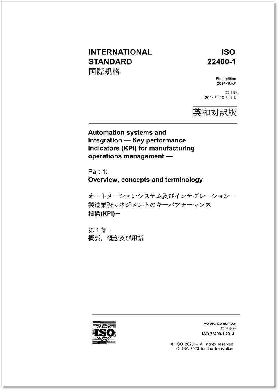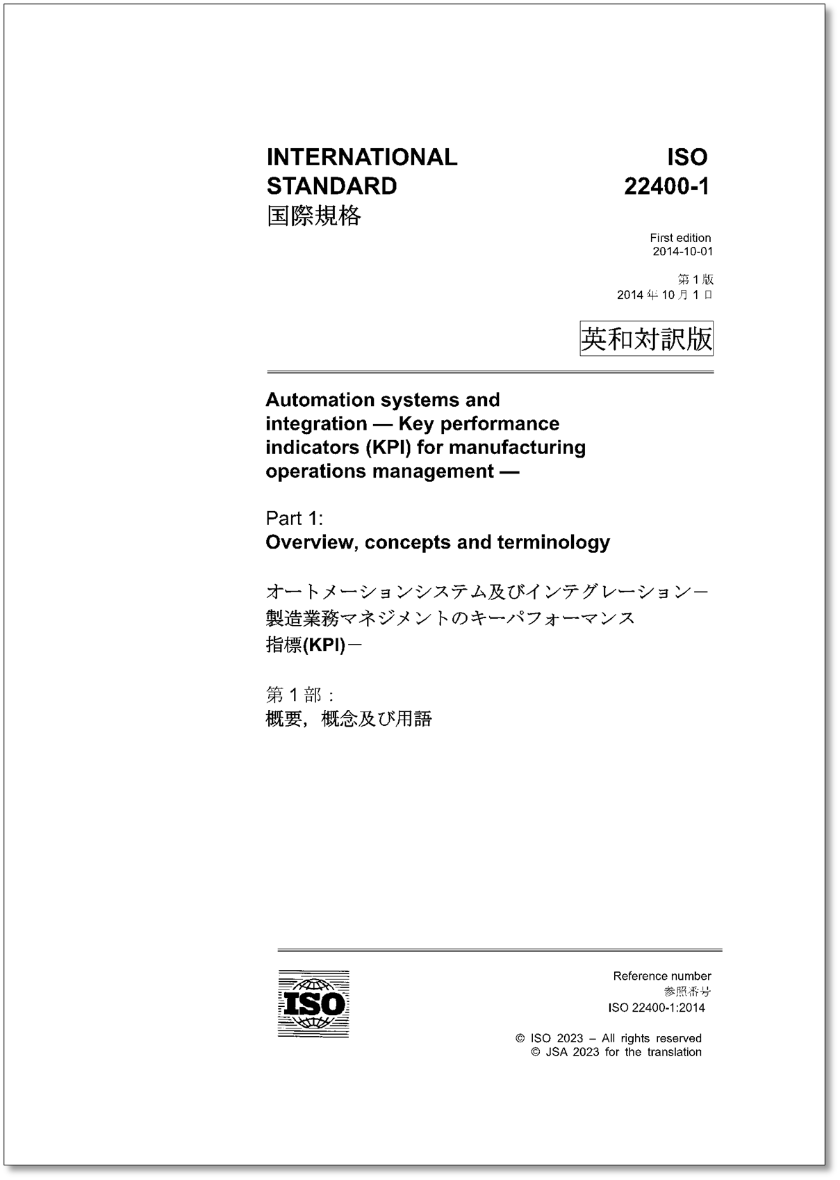 ● ISO 22400-1:2014「オートメーションシステム及びインテグレーション-製造業務マネジメントのキーパフォーマンス指標(KPI)-第1部:概要,概念及び用語」