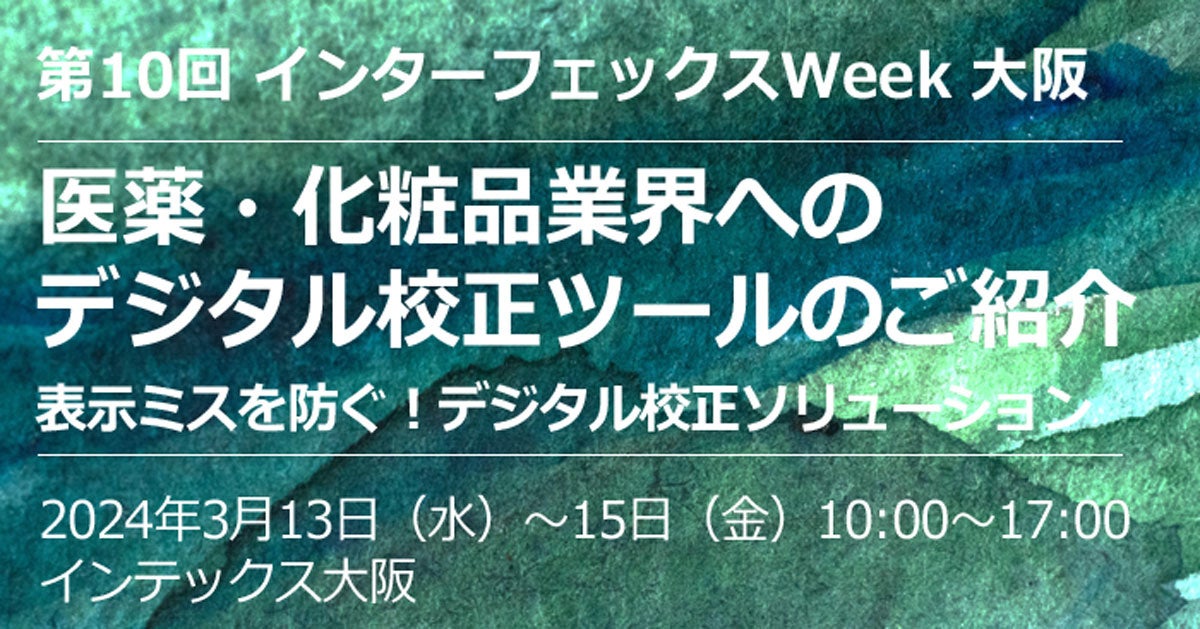 Tooブースでは「表示ミスを防ぐ!デジタル校正ソリューション」と題し、医薬・化粧品業界へのご提案と、ミスをなくし効率化を実現する比較校正ソリューションを出展します。