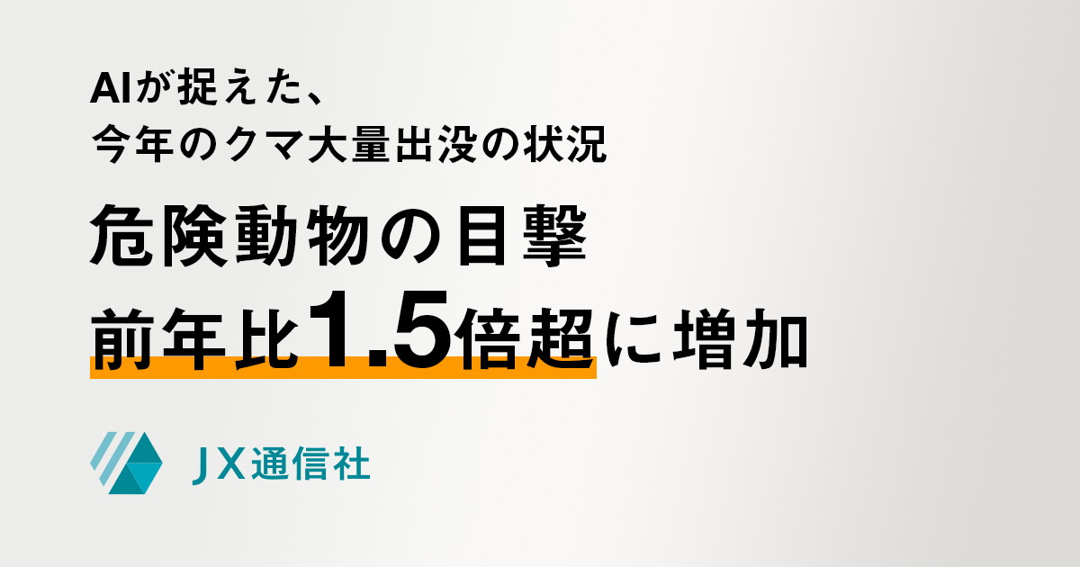 今月に入って、東北や北陸地方などを中心に、クマの市街地への出没や人身被害が相次いで報告されています。そこで、JX通信社では、SNS上のクマをはじめとする危険動物の情報を独自に収集・分析しました。分析にあたっては、クマを含む危険動物や災害、事故などの情報をAIで収集・分析するリスク情報サービス「FASTALERT」で収集した情報を用いました。