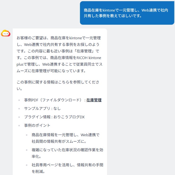 リコージャパン株式会社(社長執行役員:笠井 徹)は、クラウド型の業務改善プラットフォーム「RICOH kintone plus」に、チャットボット形式で活用相談ができる「活用相談AIアシスタント」機能のβ版を本日より提供開始します。