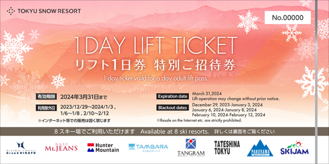 企画②:「LAGARt」NFT、および「ニセコパウダートークン」NFT保有者への東急不動産ホールディングスグループが運営するスノーリゾート施設の2023-24シーズン共通リフト1日券の抽選プレゼント