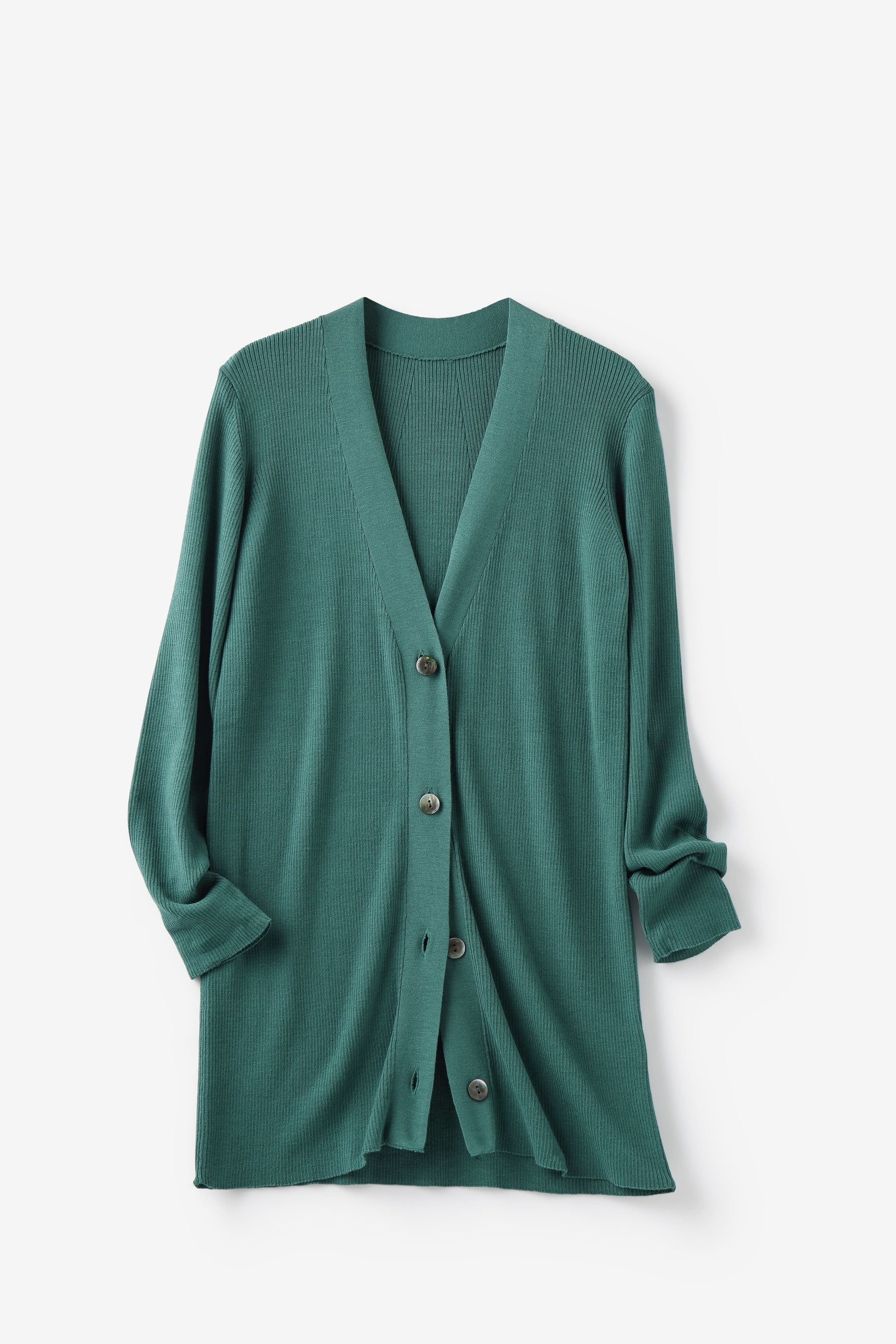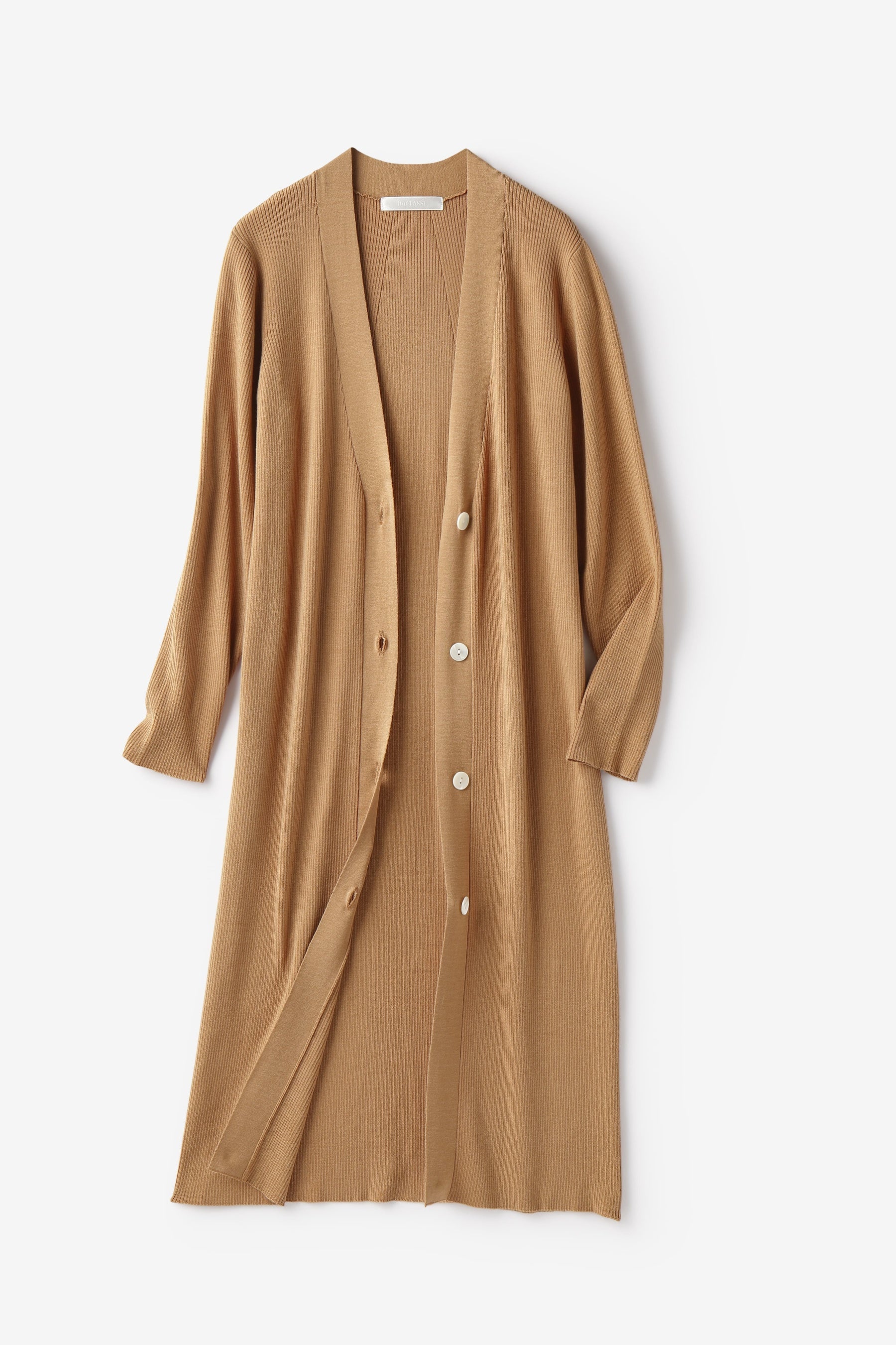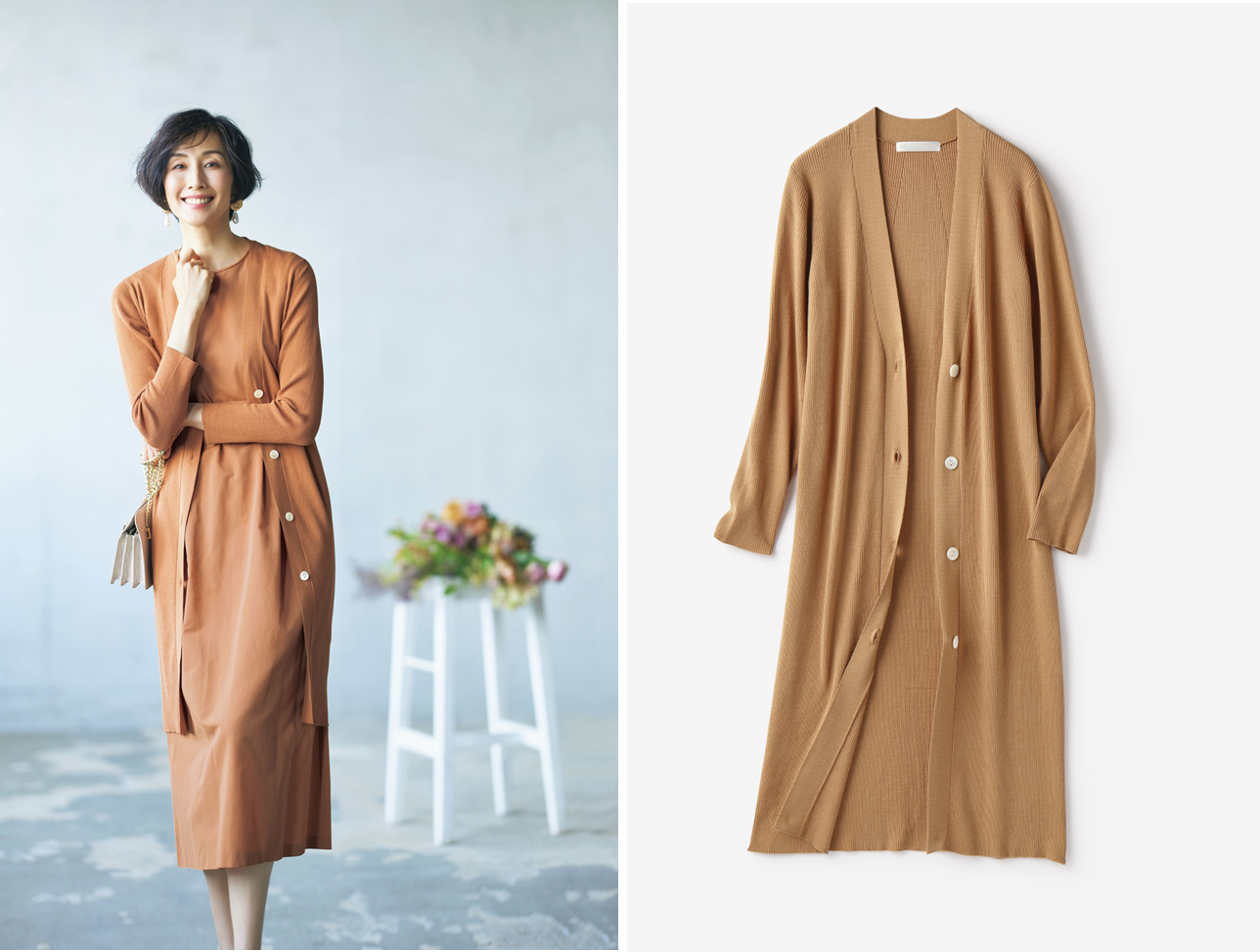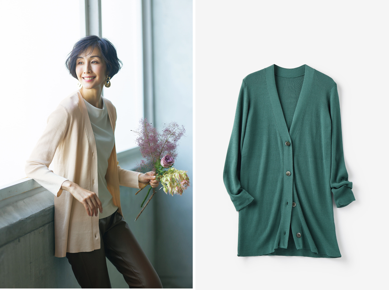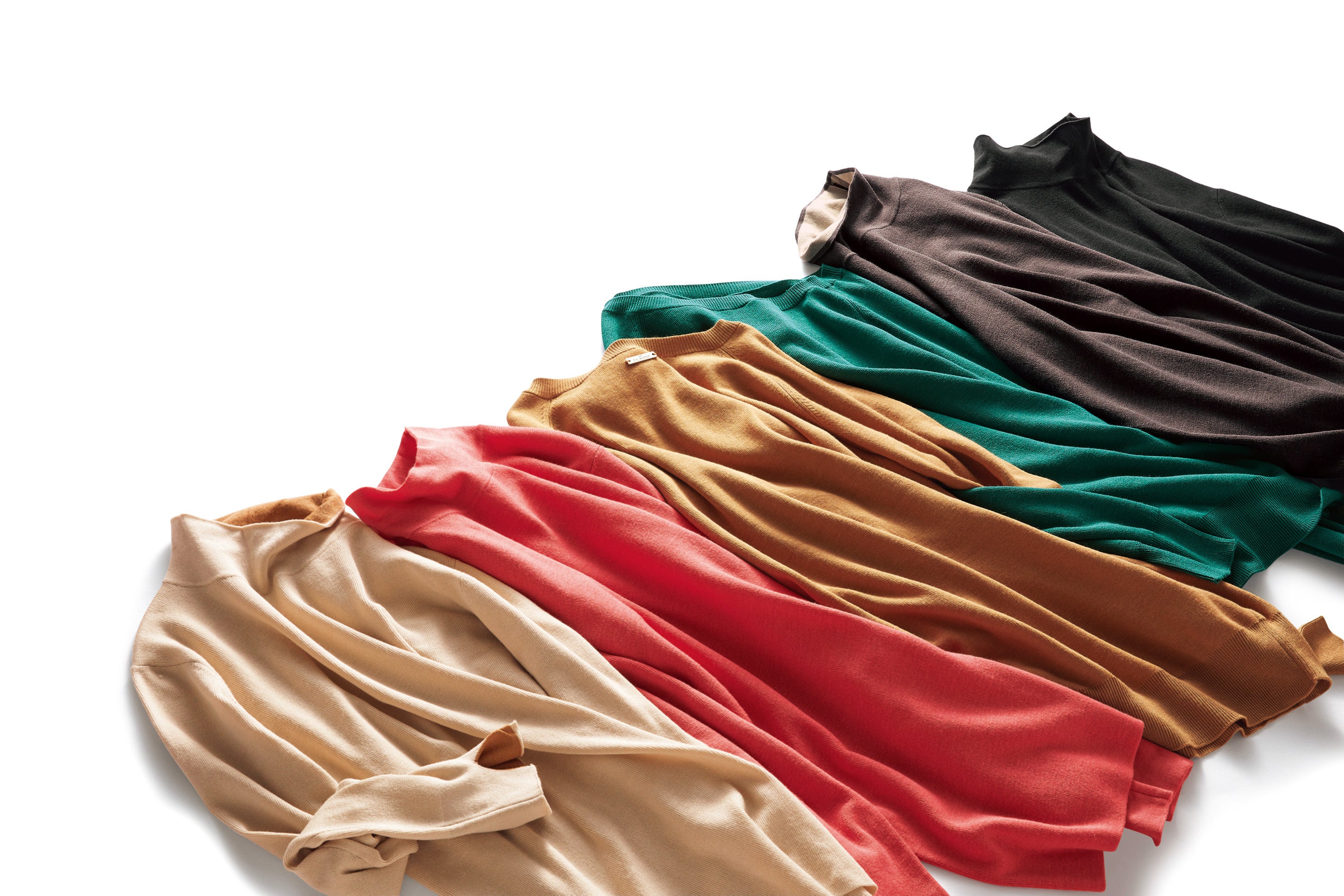 縦ラインを強調し、細見え効果抜群の「細リブロングカーディガン」や、気になるヒップも隠れる「細リブミドルカーディガン」、ゆるやかなフィット感としっかりとした編地で華奢見えする「総針ハイネック」、コーディネートアイテムを選ばない「総針クルーネック」など、美シルエットにこだわったシンプルなデザインが上質素材の良さを引き立てます。