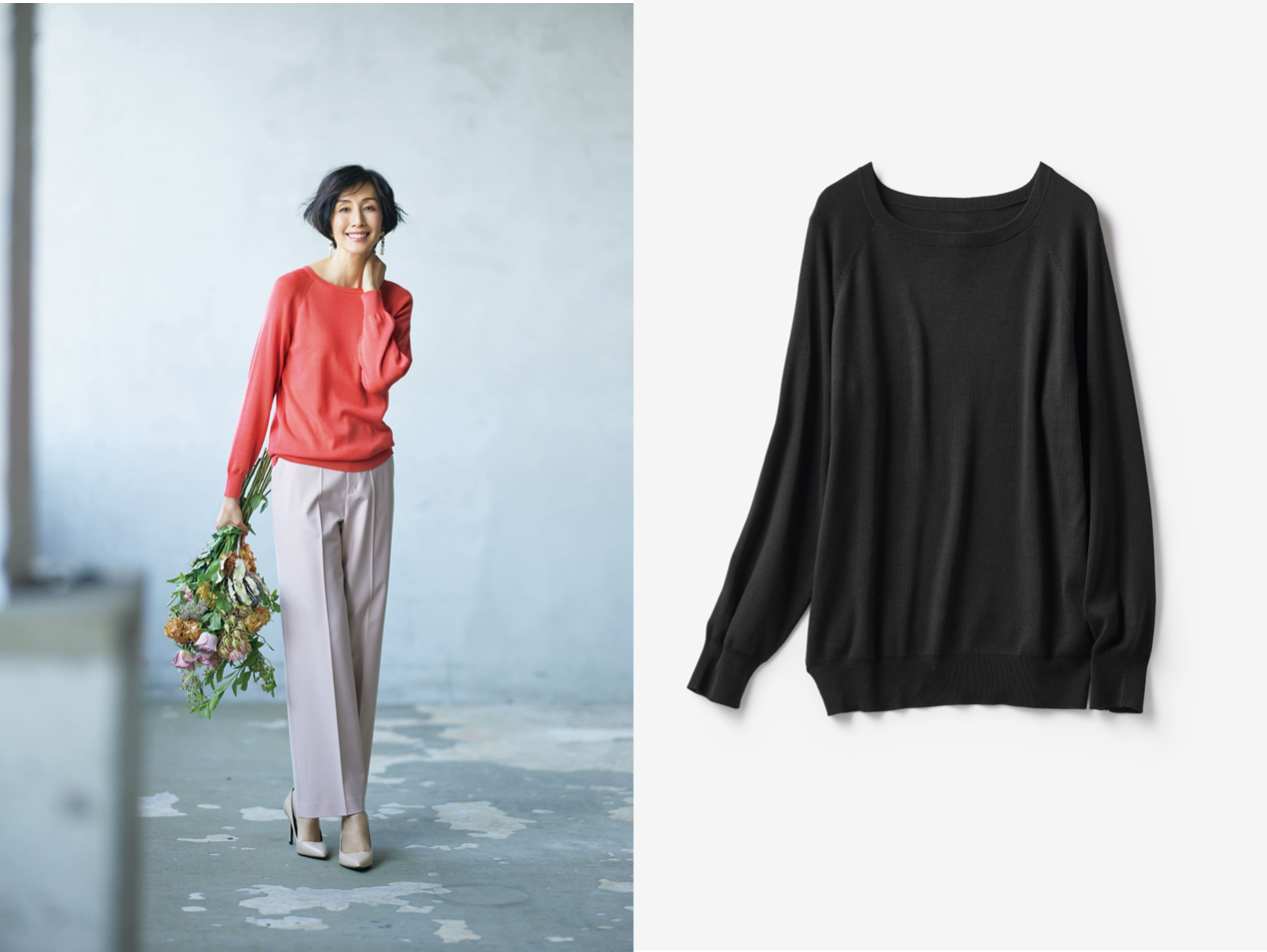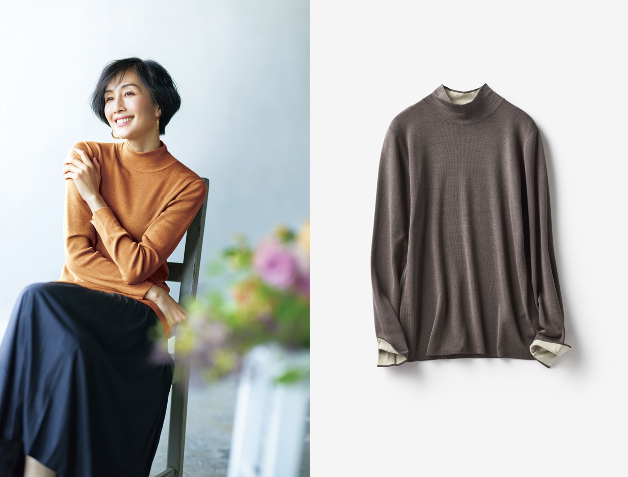 贅沢素材をふんだんに使用し、一度着ると、虜になってしまうほど極上な肌心地を叶える本シリーズ。秋の始まりに相応しいニットとして、是非ご体感ください。