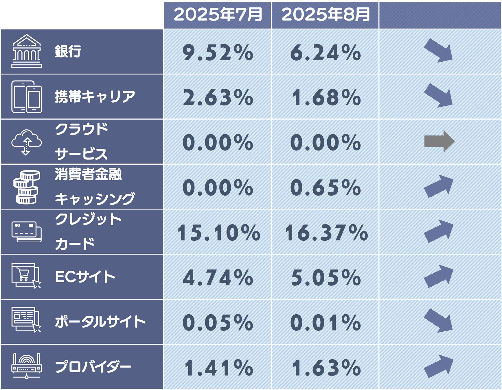 東京電力(TEPCO)を騙るフィッシングサイトが急増し、前月比で4.7倍となりました。メールやSMSなどで「支払いの確認」や「未払い」を装いフィッシングサイトへ誘導する手口です。今年の8月は記録的猛暑でエアコン利用が不可欠となった時期であり、利用者の不安心理を突いた詐欺の可能性もあります。他の電力会社を装ったフィッシングサイトは確認されませんでしたが、利用者の多いインフラサービスでもあることから、引き続き警戒が必要です。