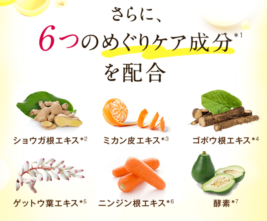 毎日マッサージしなくても大丈夫です。「6つのめぐりケア成分」を配合しているので、毎日マッサージをしなくてもハリのあるツヤやかな洗い上がりになります。
