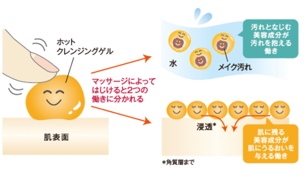 温感マッサージを施すことで血行がよくなった肌は、毛穴がゆるみ、美容成分が角質層まで浸透しやすい状態です。ホットクレンジングゲル マッサージプラスは、美容成分のバランスを変更 。 エイジングケア*1成分をさらに追加 することで、若々しく、ふっくらツヤやかな肌へと導きます。