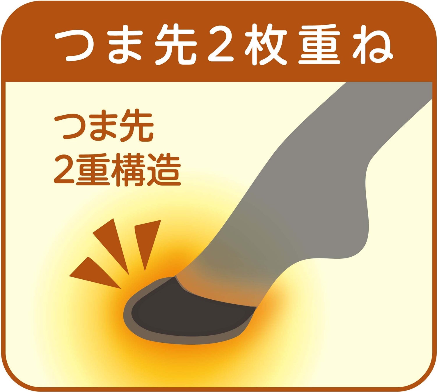 つま先部分の生地は二重構造なのであたたかく、つま先の冷えでお悩みの方におすすめのアイテムです。250デニールと厚手ながらも、綿入り素材のため気温が高めの日もはきやすいのが特徴です。