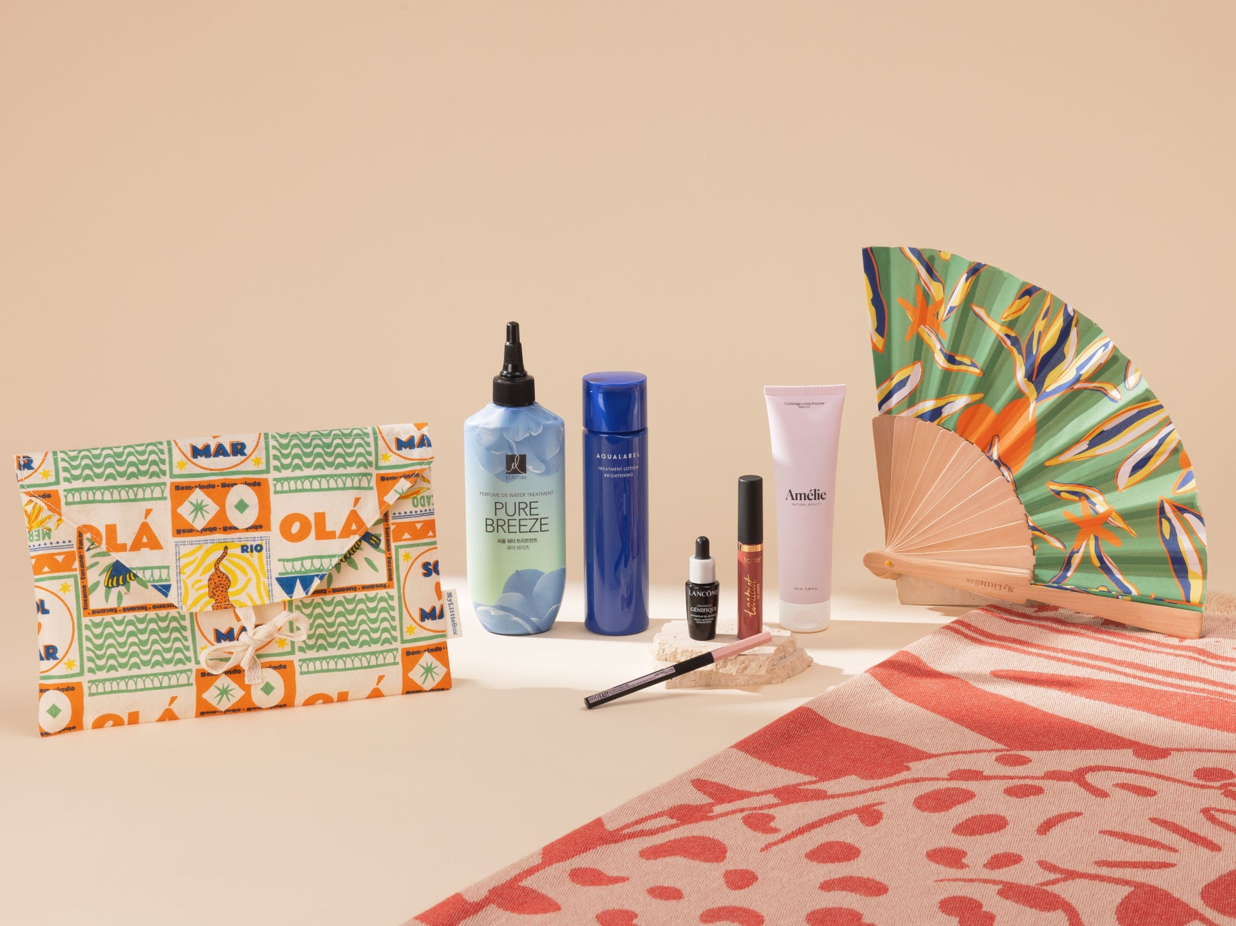 公式サイトでは、「SUMMER BOX」の販売を2024年6月1日より開始。今回は、パリや世界中でいま注目されている「リオ・デ・ジャネイロ」のファッションやカルチャーからインスピレーションを受けた、トレンドが詰まったスペシャルボックスです。お届けするライフスタイル雑貨は、リオを感じさせるカラフルなデザインのポーチ、ビーチタオル、扇子の3点。コスメには夏のセルフケアにぴったりな「LANCÔME」の美容液を含む豪華な6アイテムを揃え、バカンスムードを盛り上げます。