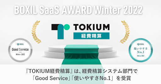ペーパーレス経費精算クラウド「TOKIUM経費精算」、「BOXIL SaaS AWARD Winter 2022」経費精算システム部門で「Good Service」「使いやすさNo.1」 を受賞