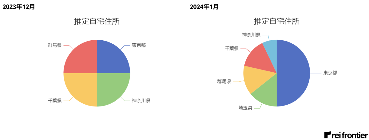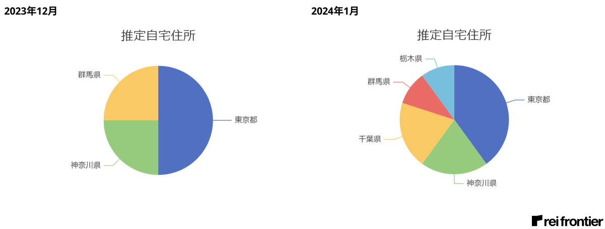 12月も1月も東京からの来場者が1番多いですが、2番目に多い来場者の自宅推定を見ると、12月は地元の新潟県が多く、トップシーズンに入った1月は神奈川県からの来場者数が上回りました。