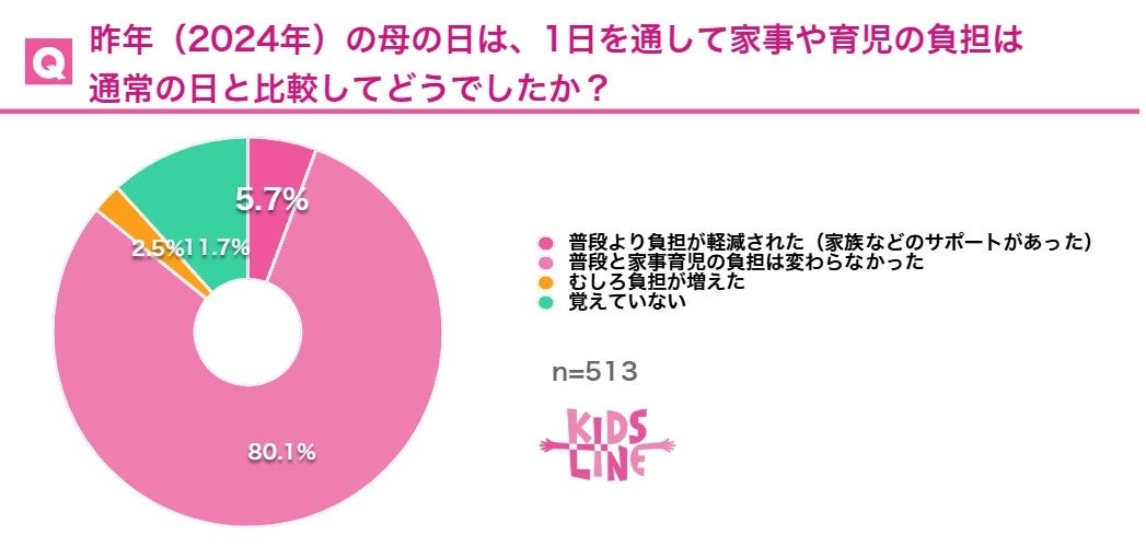 ■80.1%の母親が「昨年の母の日は、家事・育児負担は普段と変わらなかった」と回答