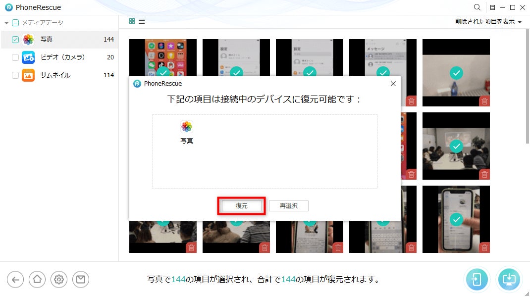 Step 2.復元したい写真を確認・選択・復元します。
