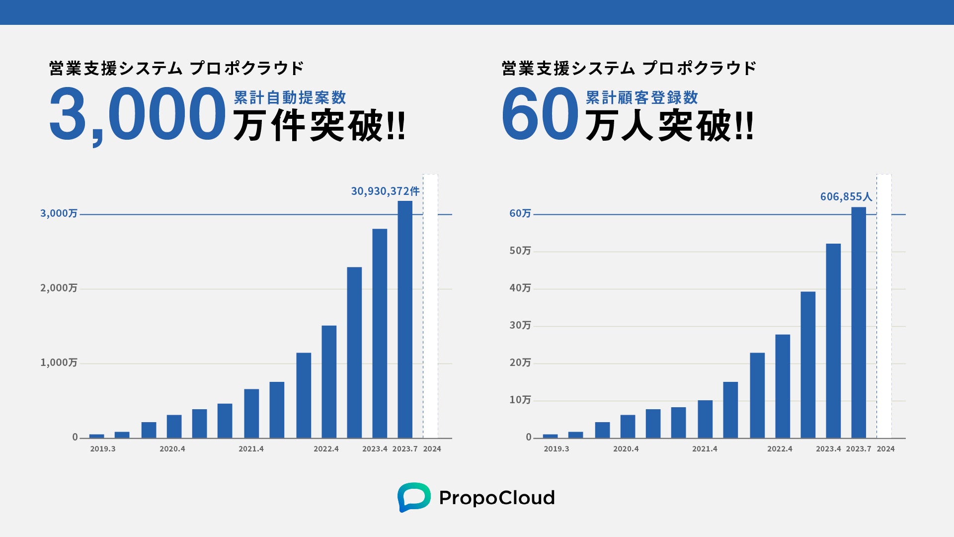 この度、2023年7月に「PropoCloud(プロポクラウド)」の累計自動物件提案数が3,000万件、累計顧客登録数60万人を突破しました。