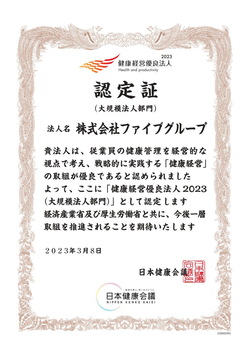▽ファイブグループ健康経営宣言