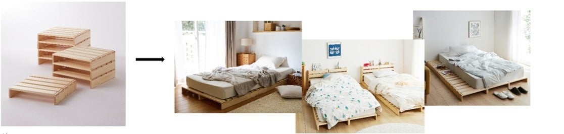 従来商品の「組み替えられる」利便性はそのままに、連結金具不要となって更に使いやすくなった「簡単に組み替えができるパレット風ベッド」が、生活の変化に寄り添う商品としてお役に立てることを願っています。