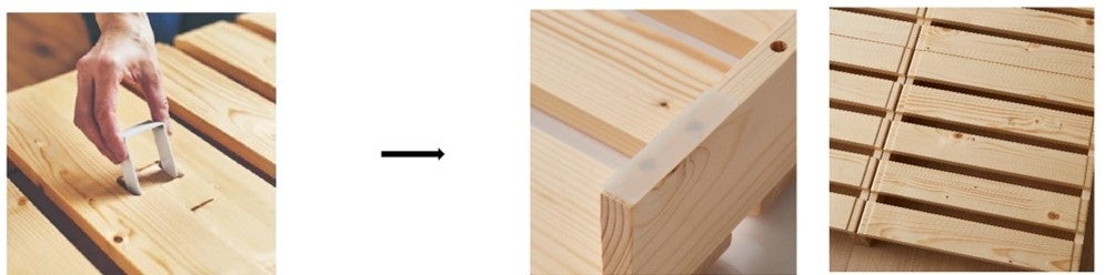 これまでお客様からは、「使わない時の金具の管理が手間」等のお声をいただくことがありました。長く使うことを見越して「パレット風ベッド」を購入される方々により快適に使っていただきたいと考え、「もっと気軽に片づけや組み替えができ、片付けや引っ越しの際の部品管理の手間もなくせないだろうか?」という発想から生まれた改良です。