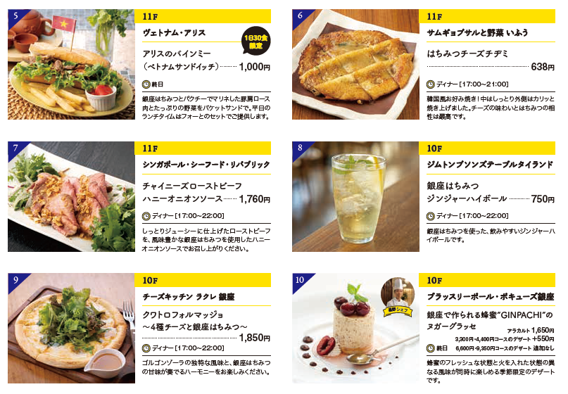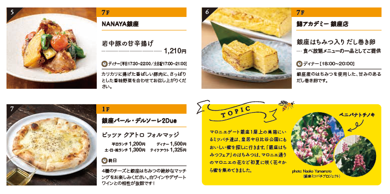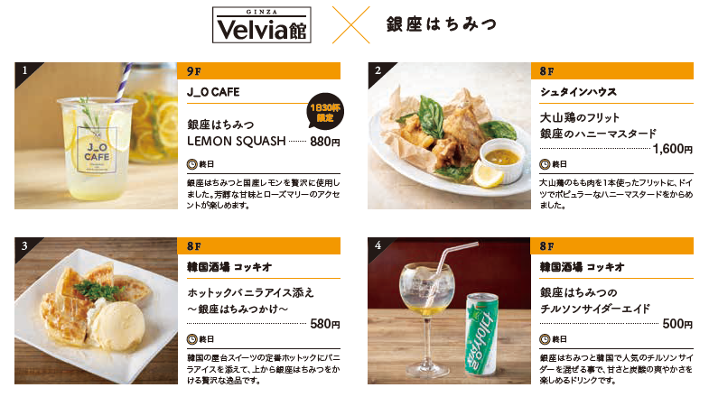 銀座で採れたはちみつを使った、期間限定のオリジナルメニューをぜひお楽しみください。
