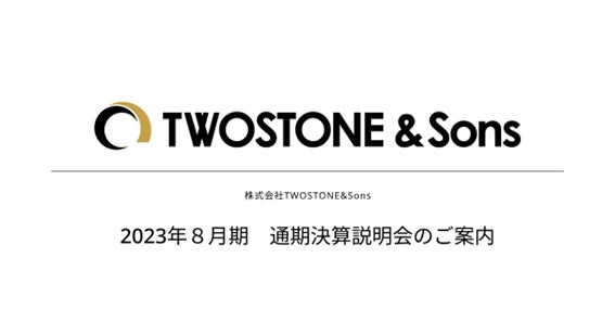 【TWOSTONE&Sons】2023年8月期 通期決算説明会のご案内
