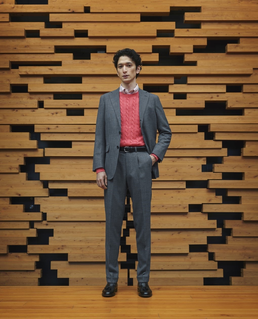 スーツ 108,900円、セーター 17,600円、シャツ 20,900円、ベルト 39,600円、シューズ 参考商品