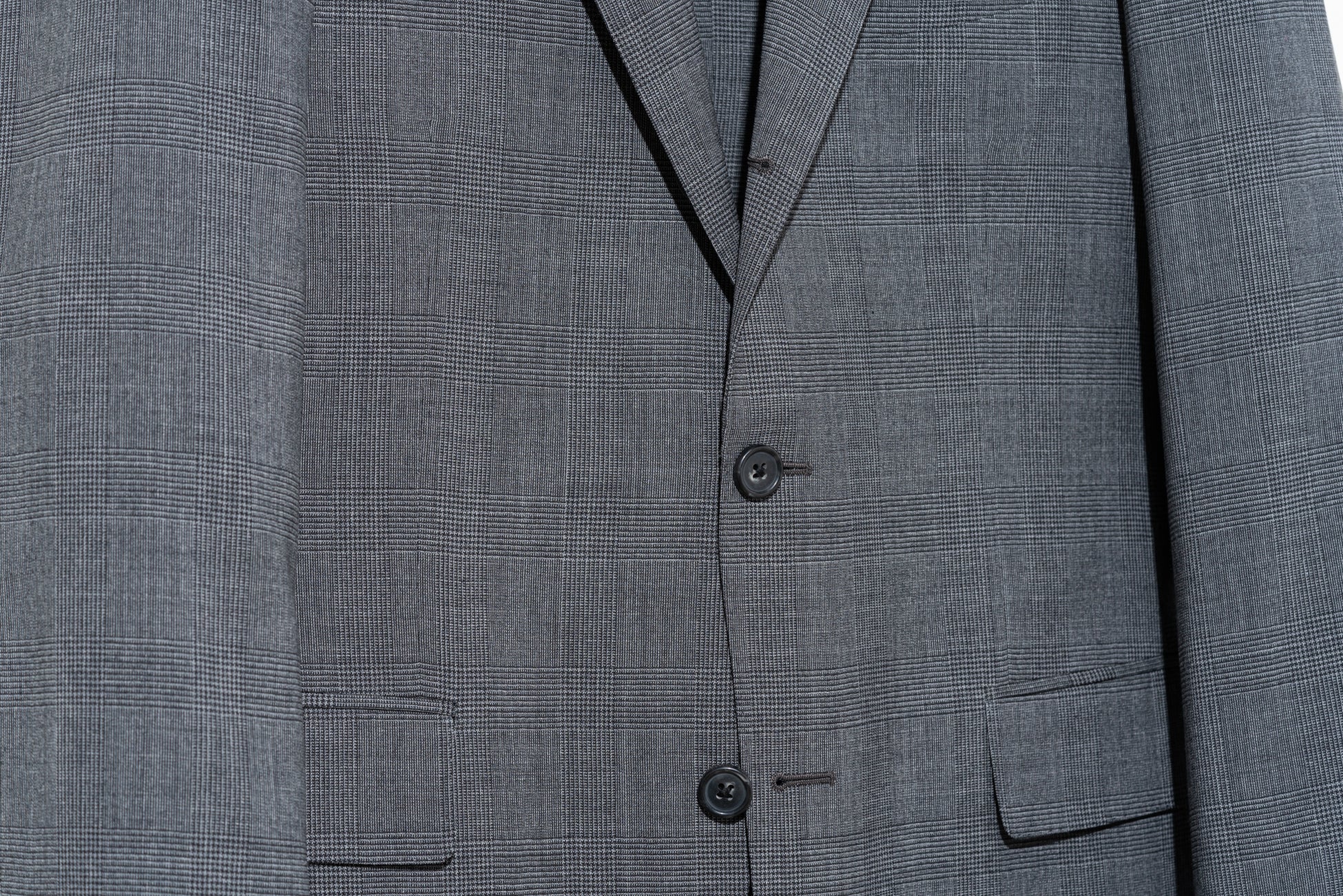 昨今の潮流に即してラペルはやや広めに設定する一方、ゴージラインを高めにして現代的な印象に。落ち着いた印象でありながら重厚に見えすぎないよう意識しています。ちなみに肩はノーパッド、身頃の芯地も薄めものを採用。スーツにも軽快さが求められる今に即した着心地に仕上げました。