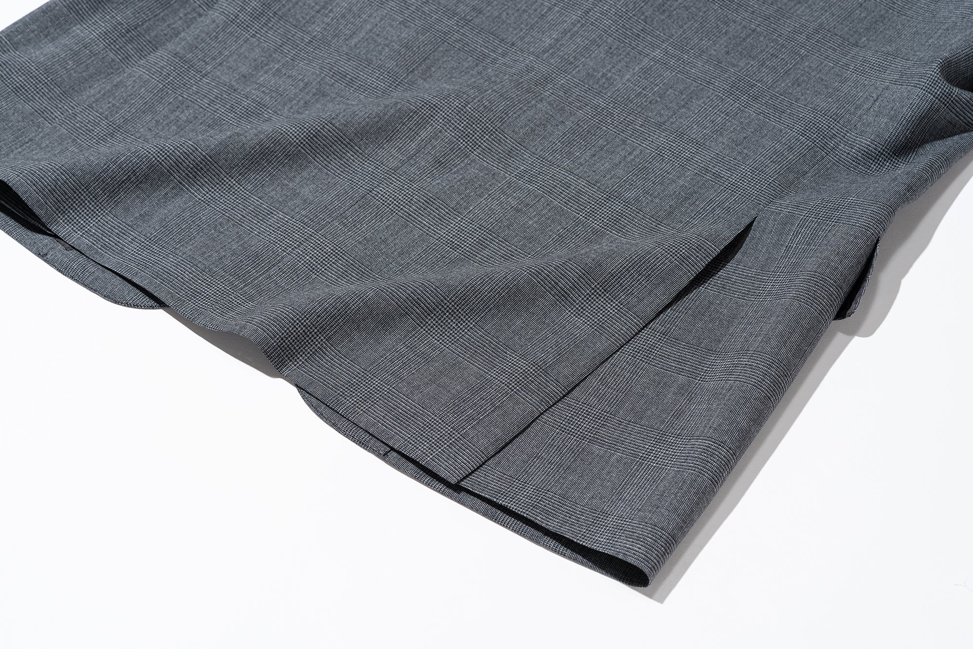 ジャケットも背中は2本のスリットが入るサイドベンツ。3つボタン段返りの場合、これまではアメリカの伝統であるセンターベントが採用されていたため、こちらもハイブリッドを表現するディテールとなります。フロントダーツを入れ、すっきりとした印象に仕上げたシルエットにもマッチしています。